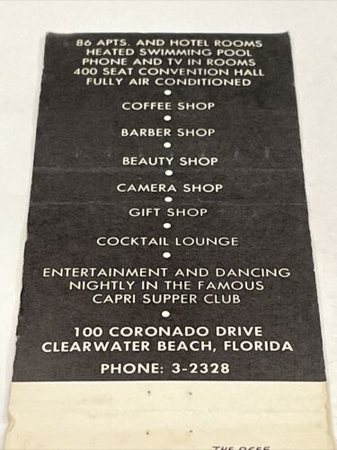 Matchbook Cover REEF Apts. and Hotel Rooms Clearwater Beach, FL gmg Unstruck