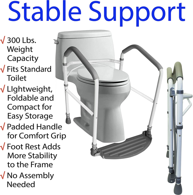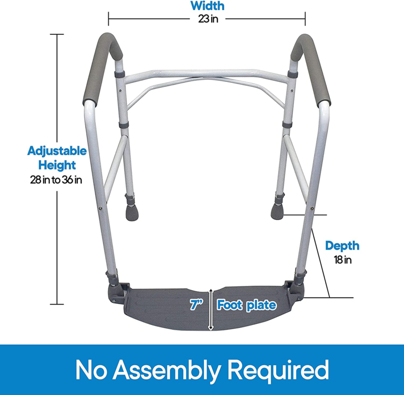No Assembly Required! Folding and Portable Toilet Safety Frame and Hand Rail is an ideal daily living aid for anyone who suffers from limited mobility.