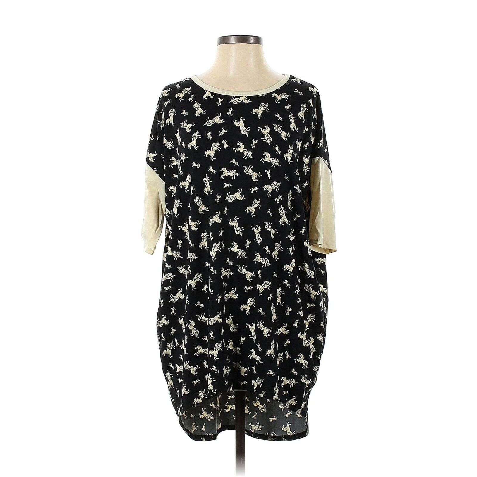 LuLaRoe LLR Irma High/Low Women's Blouse Small Oversize Black Ivory Unicorn