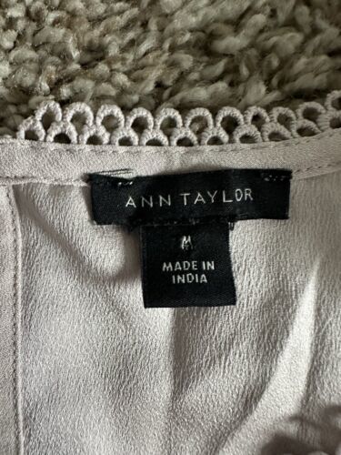Ann Taylor Long Sleeve Sheer Blouse Tan Size Medium Key Hope Back Round Neck. Condition is Pre-owned. Shipped with USPS Ground Advantage.