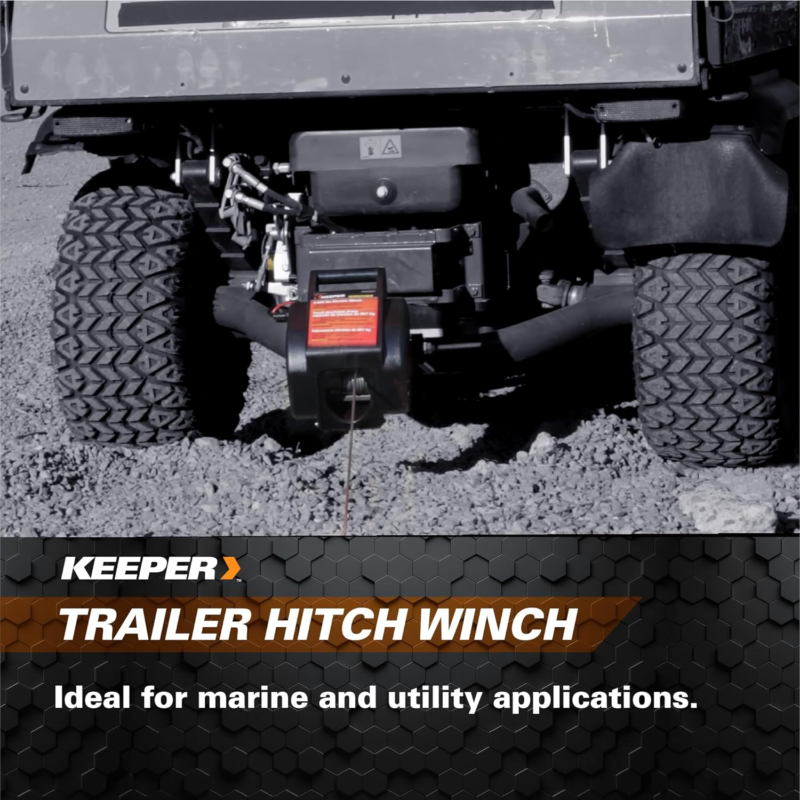 The KWSL2000RM (Rapid Mount) is a Convenient and Portable Winch that is Ideal for Marine and Utility Recovery. 0. 8 HP Series Wound 12V DC Motor, Automatic Mechanical Full Load Brake, 30?L x 5/32?Dia. Galvanized Wire Rope with Looped Thimble and Clevis Hook with Latch, Manual Turn Friction Plate Free-Spool Clutch, Spur Gearing, Case Hardened Gears, Hand Held Toggle Switch on 10? Lead, Power Lead Fitted with Water Sealed Plug and Circuit Breaker, Rapid Mount Bracket for Trailer Hitch Ball. Power In Only. 2, 000 lbs. Rated Line Pull, 2, 000 lbs. 5000lbs. Rolling Load (Single Line Rated). Rope Length: 30 ft, Clutch Type: Freespool, Line Speed: 8 ft/min
