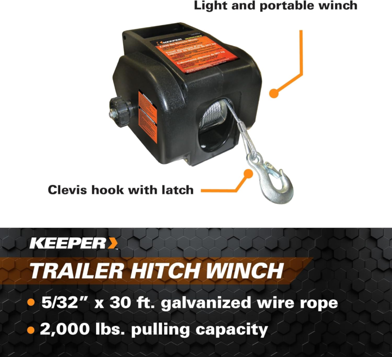 2,000Lbs Portable Winch 2000RM Tracker Series 12V DC