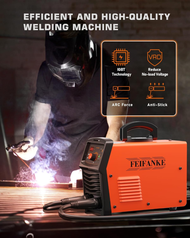 ?Easy to Operate Welder Machine 110V/220V?FEIFANKE welding machine is equipped with a digital display screen and simple operation buttons. Simply select the welding mode and adjust the current to start your welding work. Suitable for beginners, hobbies and professional welders, it is easy to get started and provides a high-quality welding experience.
