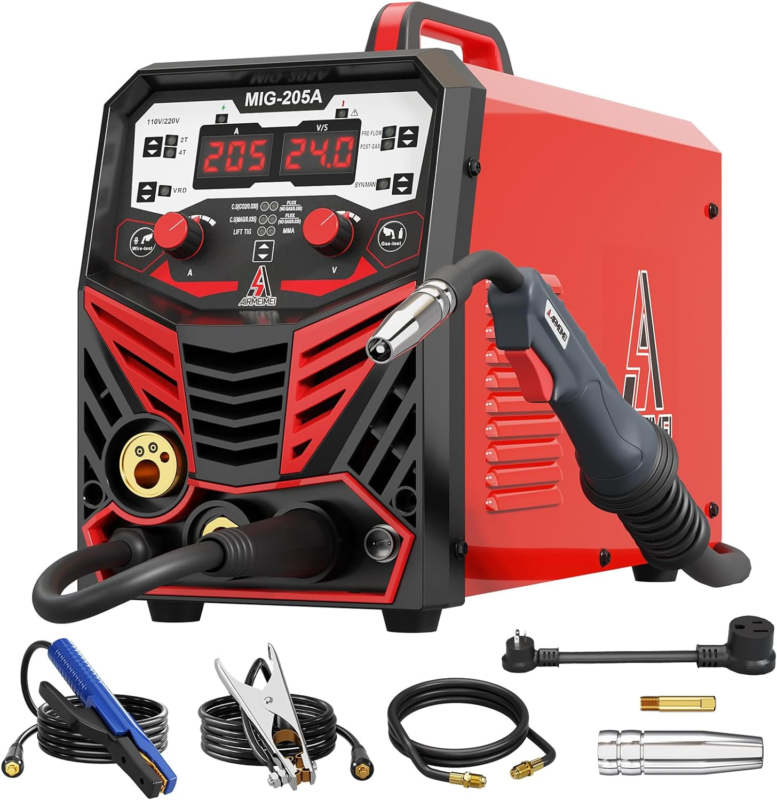 110V/220V, 205Amp 7 in 1 Gas Mig/Mag/Gasless Flux Core Mig/Lift Tig/Stick/Spot Welding/Spool Gun,Aluminum Multi Process Welding Machine,Synergic Control,Wire Feed Welder