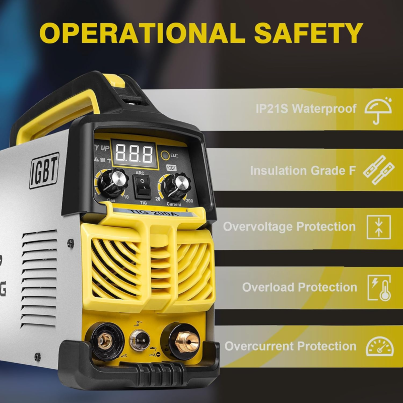 ?Multi-layered Protection?This TIG welder's innovative four-side cooling ensures rapid cooling, extending the welder's lifespan. Built-in overvoltage?overload?overcurrent protection offers comprehensive safety, ensuring a reliable and secure welding process.