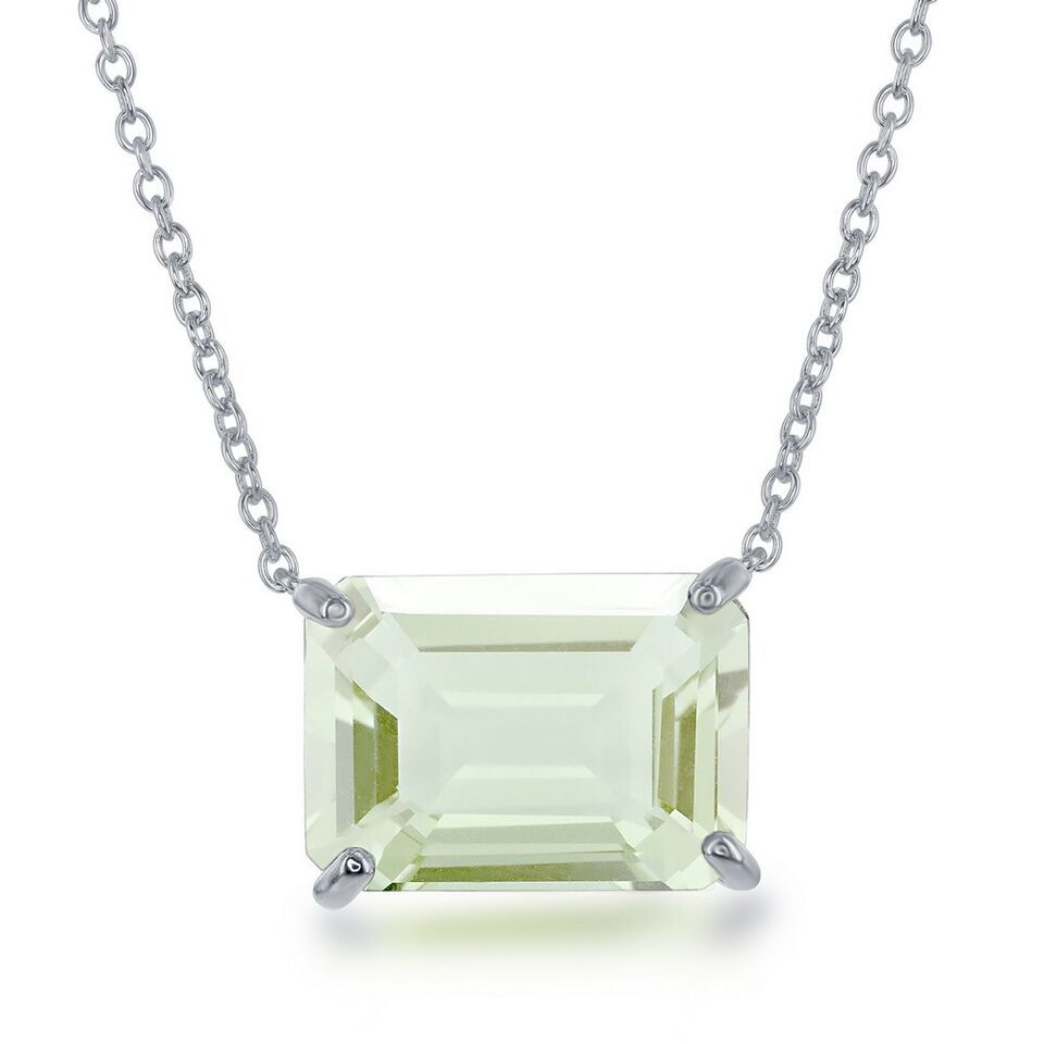 Sterling Silver Rectangle Prong Set Gem Necklace - Green Amethyst