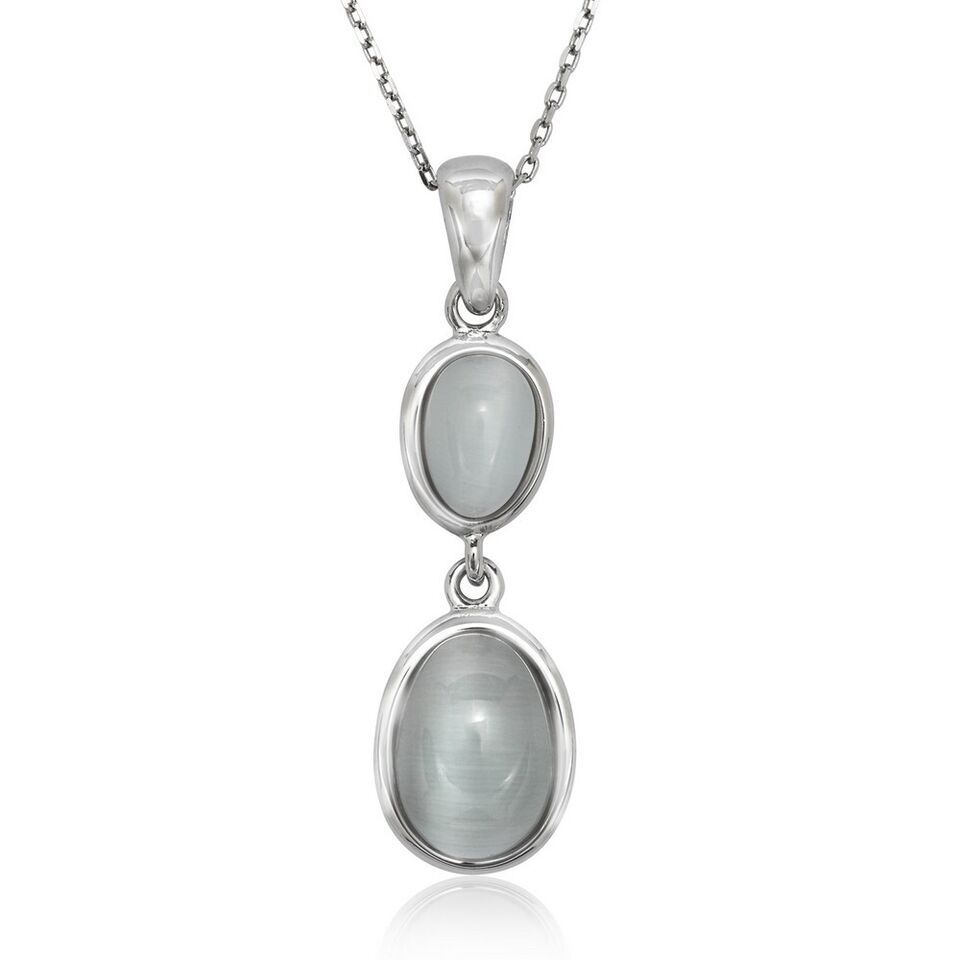 Sterling Silver Dark Blue and Light Blue Oval Catโs Eye Necklace