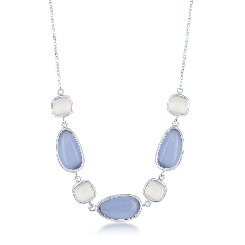 Sterling Silver Irregular Blue Gray and Square Gray Cat's Eye Necklace