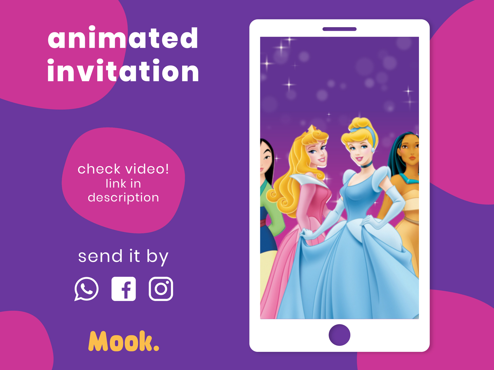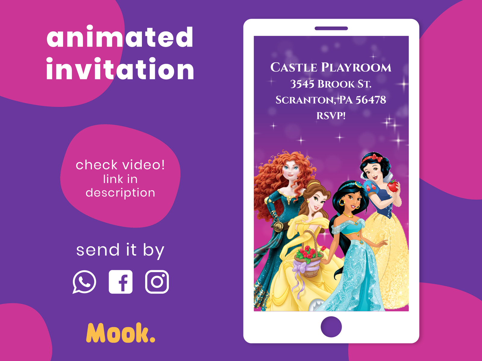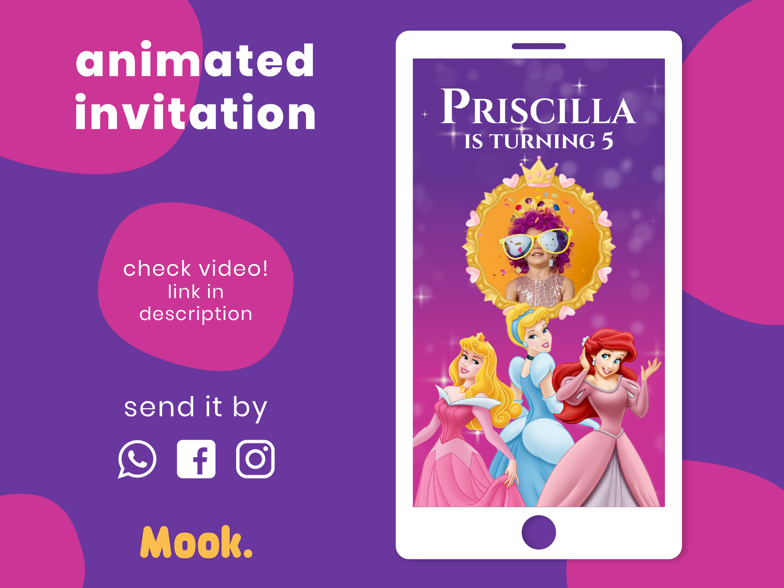 Disney Princess Video Invitation Animated Digital Birthday