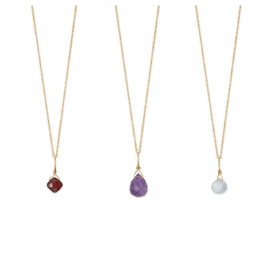 Genuine 14k Yellow Gold Gemstone Birthstone 16" Necklace (January - December)