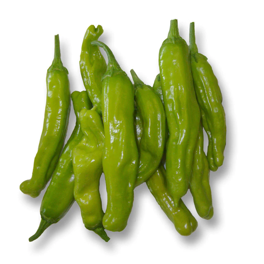 A favorite old Japanese variety which produces 3 inches long, slightly wrinkled fruit that is perfect for making tempura and other traditional recipes. Fruit is emerald green in color, ripening to red, and mildly flavored with just a bit of spice. It really is superb and is the standard with many chefs.