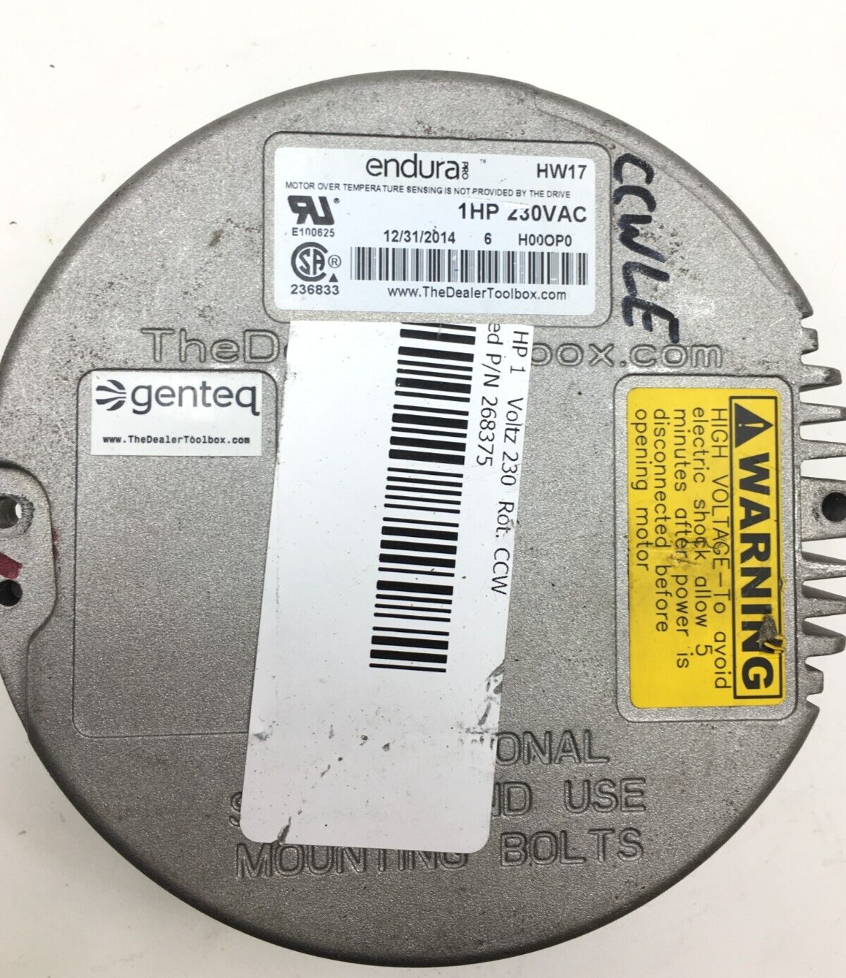 Genteq Endura HW17 230VAC 1HP CCW LE rotation used tested dated 2014 year #Z664