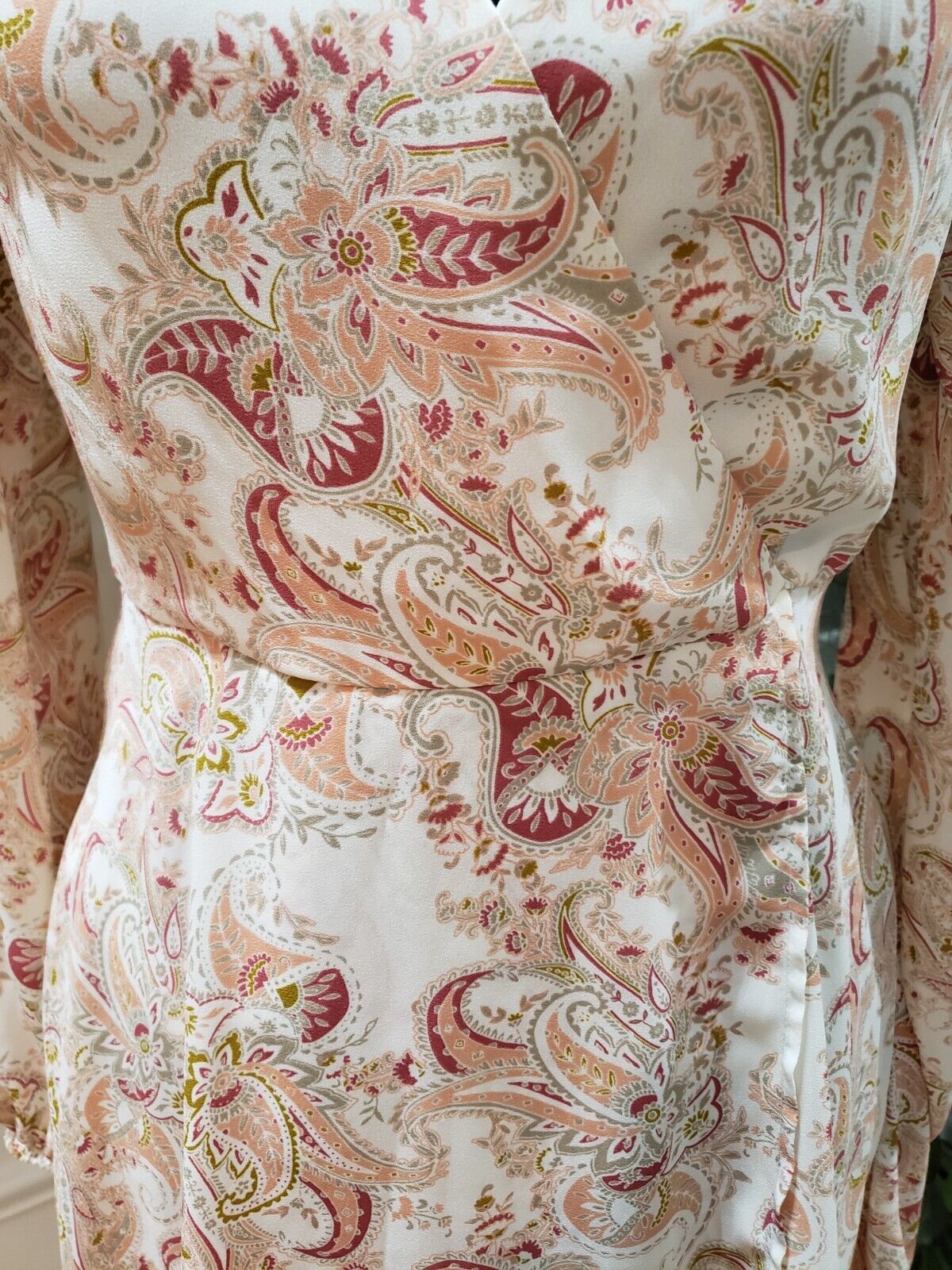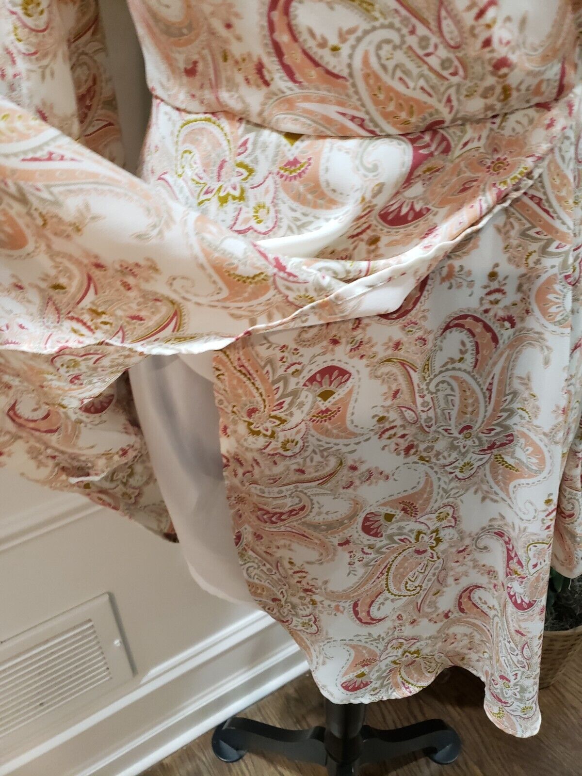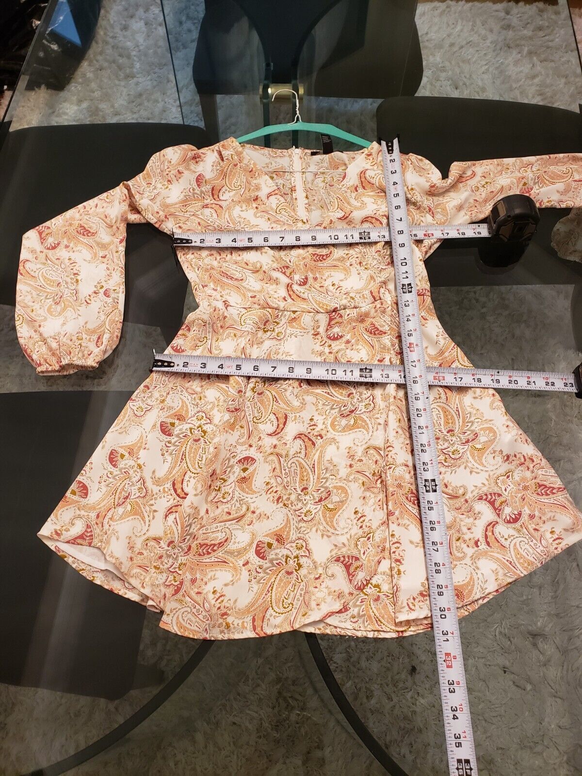 FOREVER 21 Womens Beige Paisley Polyester V-Neck Long Sleeve Knee Length Dress M.