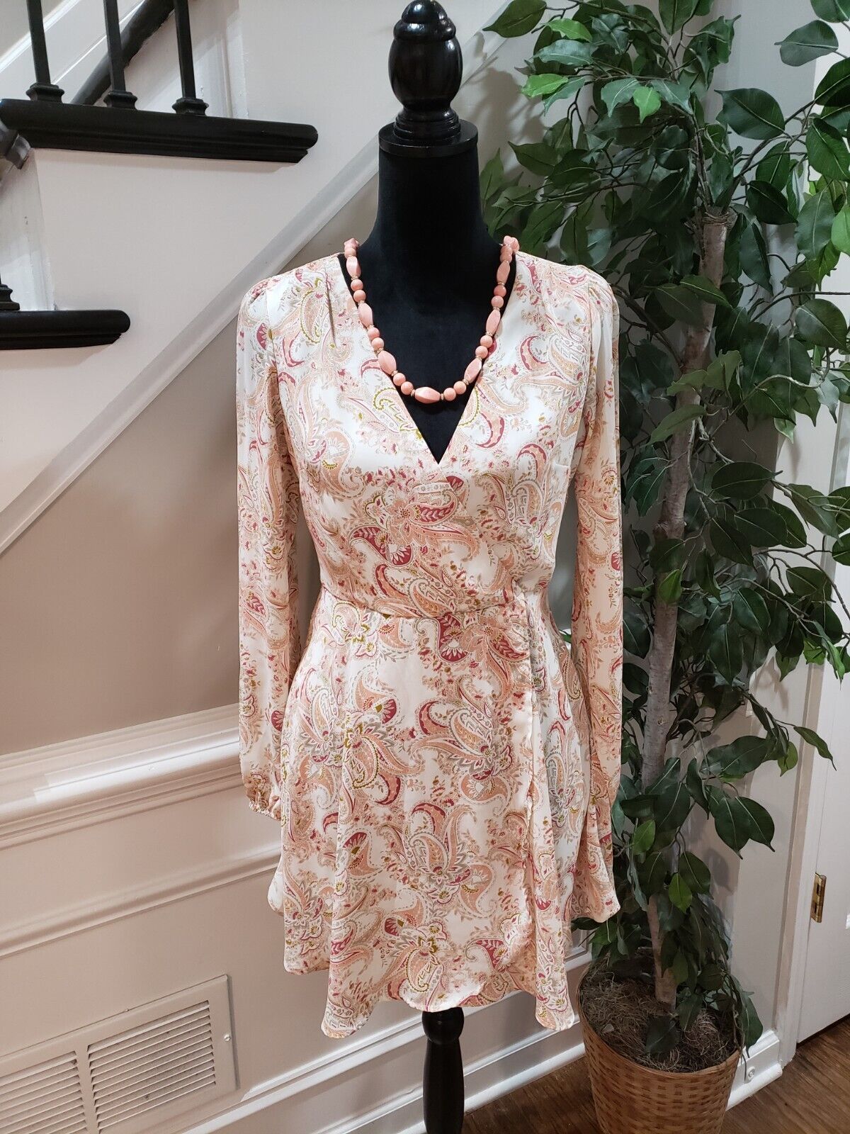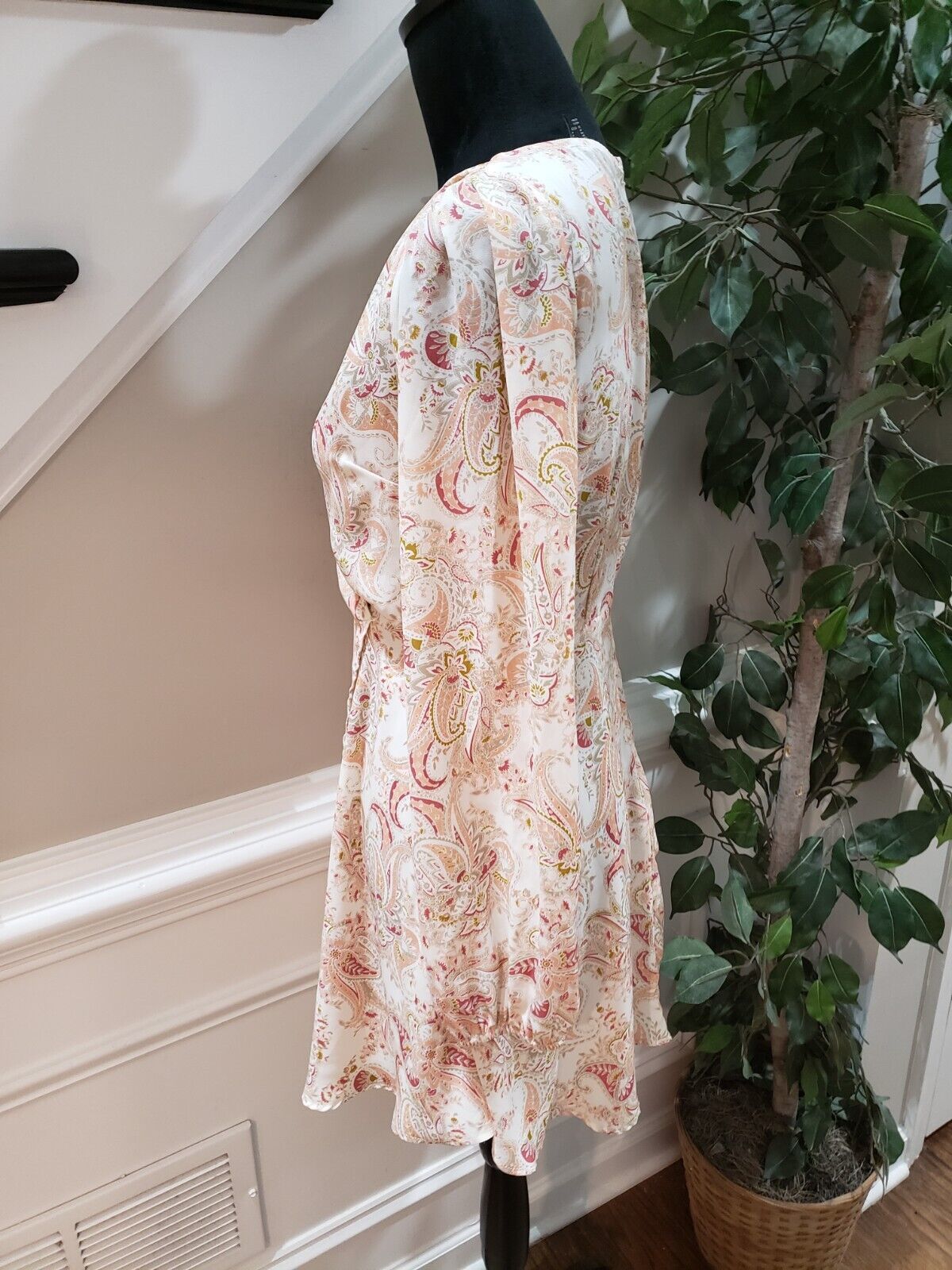 FOREVER 21 Womens Beige Paisley Polyester V-Neck Long Sleeve Knee Length Dress M
