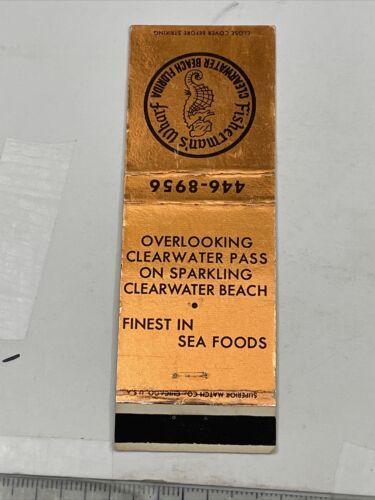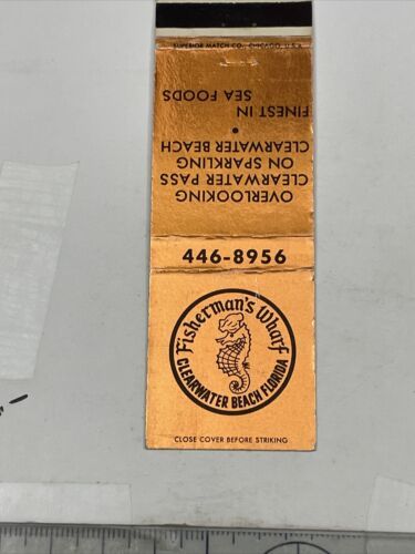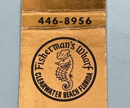 Vintage Matchbook Cover Fisherman’s Wharf Clearwater Beach, FL gmg Unstruck