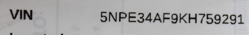 SONATA 19 (cluster), US market (MPH), 2.4L, 3.5" display screen