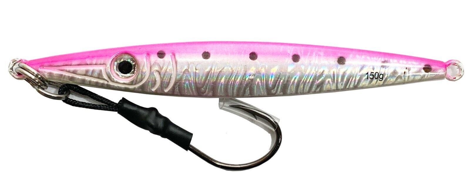 Saltwater Vertical Fishing Lead Jigs 150 gram 5.2 ounces with Assist Hook 6 pcs