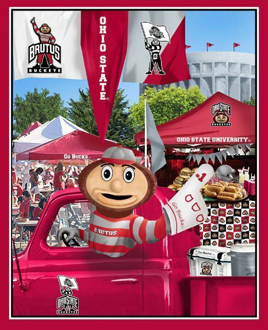 36" X 42" Panel Ohio State University OSU Buckeyes Brutus Mascot Football Fans Tailgating Tailgate Party Truck College Sports Digital Print Cotton Fabric Panel (OHS-1157)