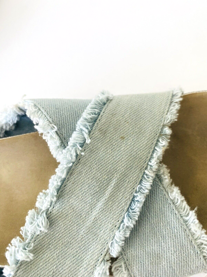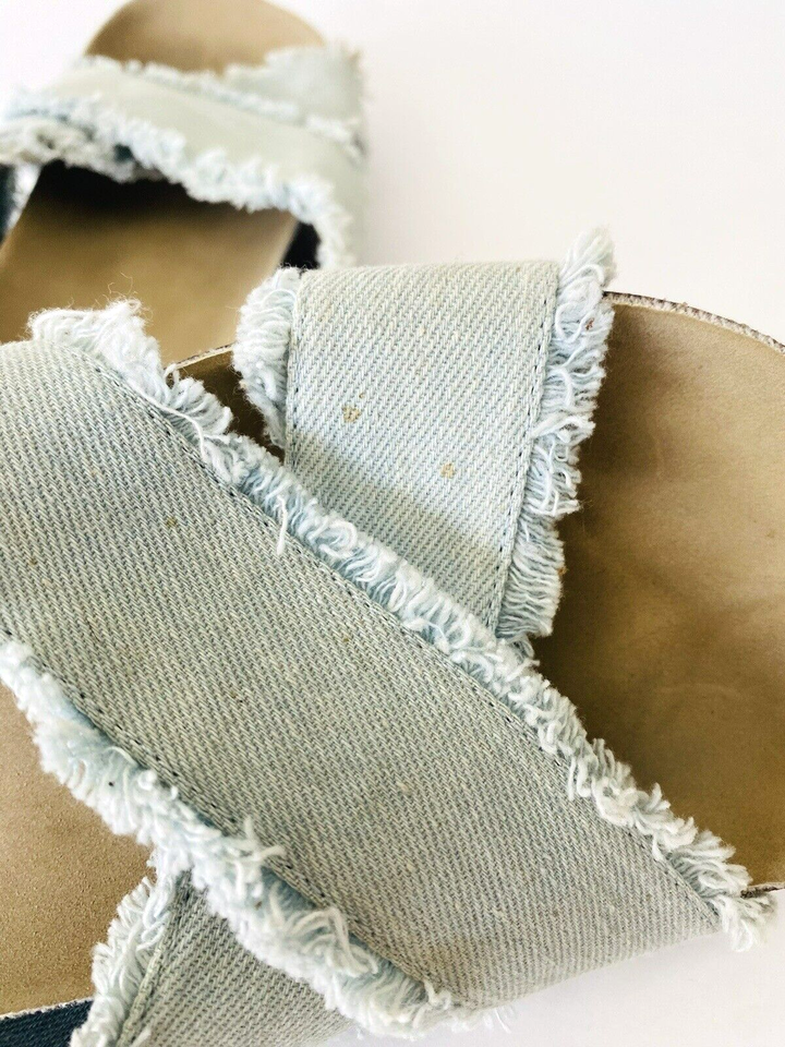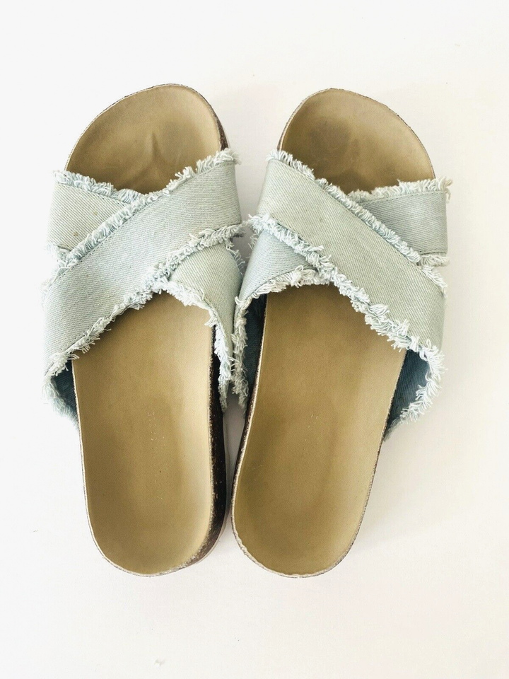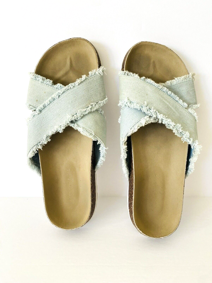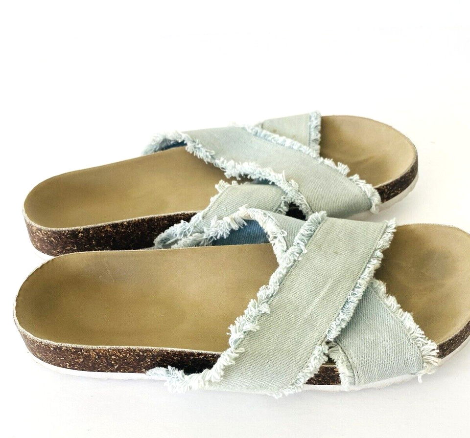 AMERICAN EAGLE Sandals Women's Denim Blue Boho Slides Double Cross Strap Size 8