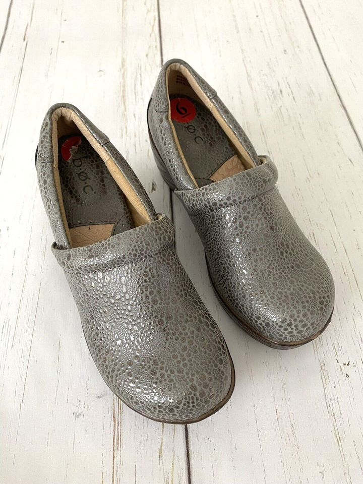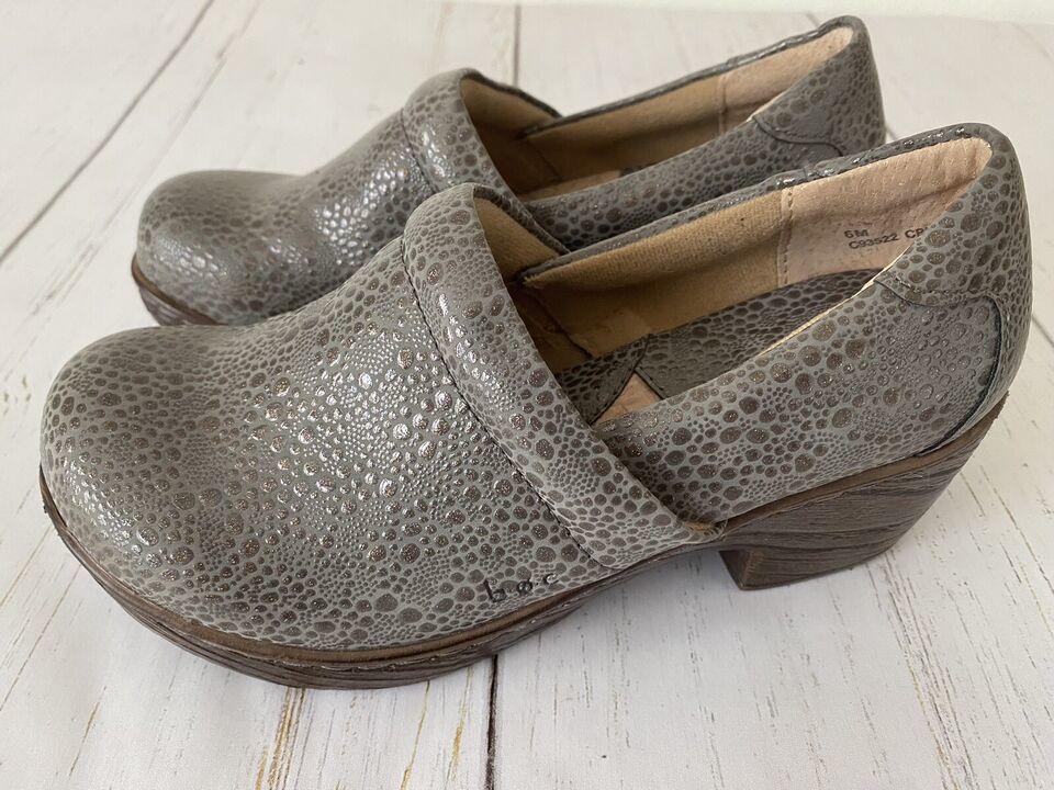 BOC Born Concept Women's Embossed Working Nurse Clogs Metallic Gray Size 6