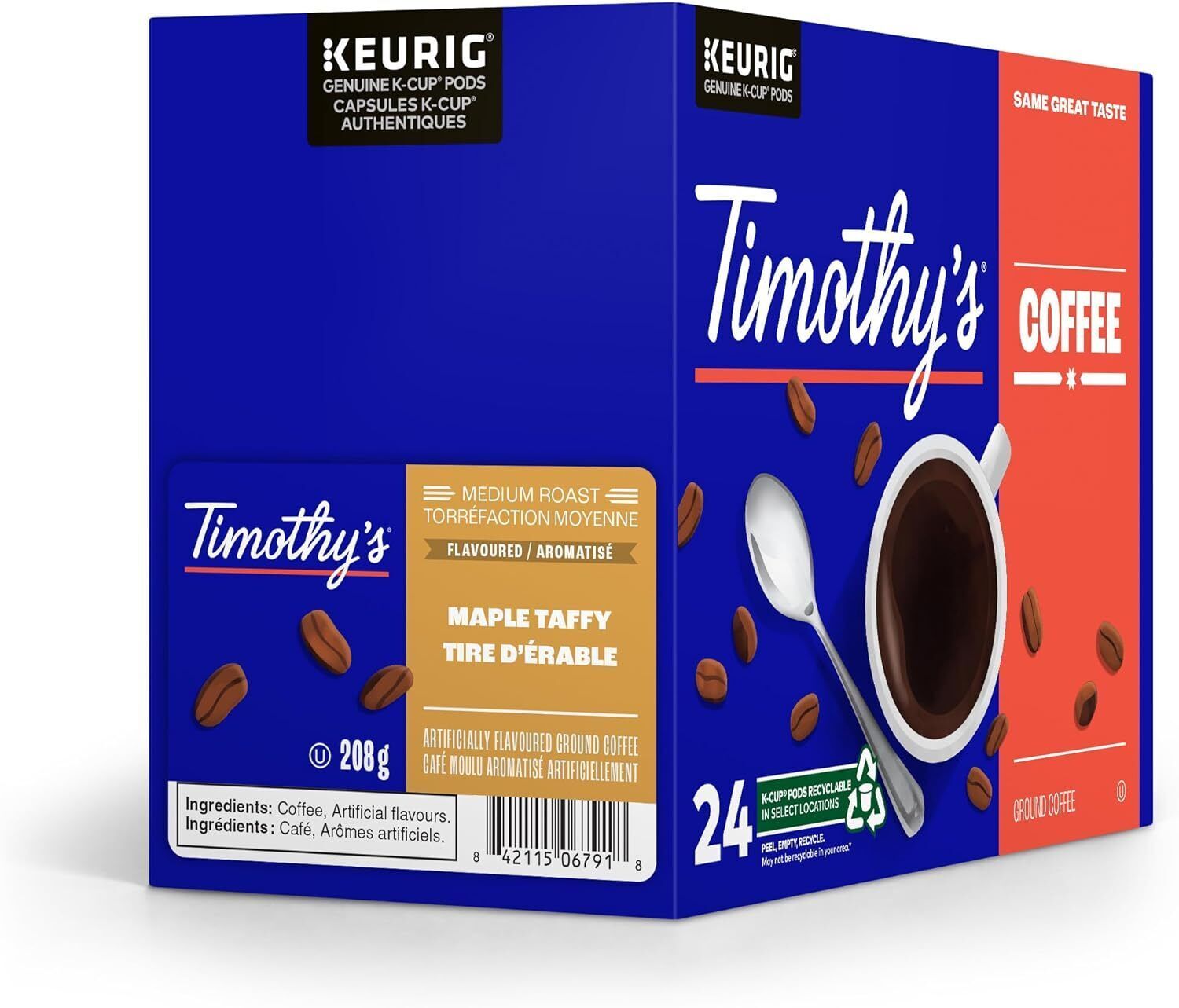 Timothy's Maple Taffy Coffee 24 to 144 Keurig K cups Pick Any Size FREE SHIP