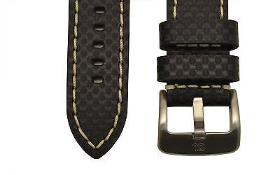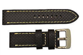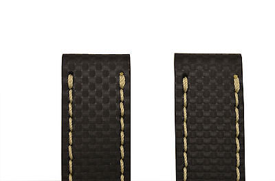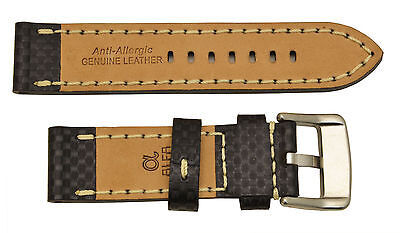 22mm CARBON FIBER black genuine leather watch band heavy duty strap