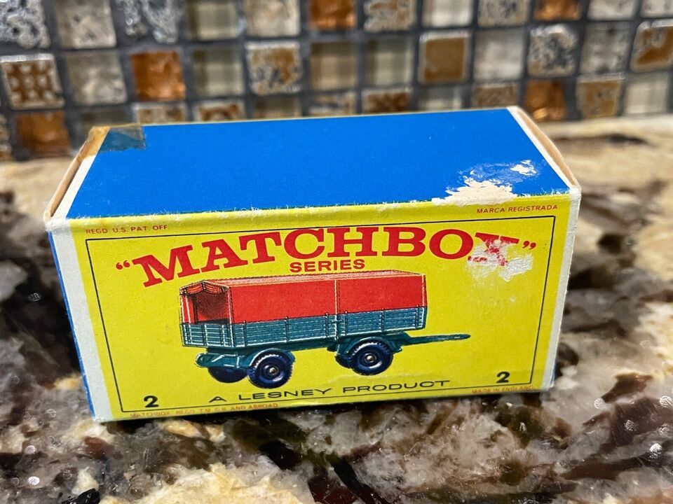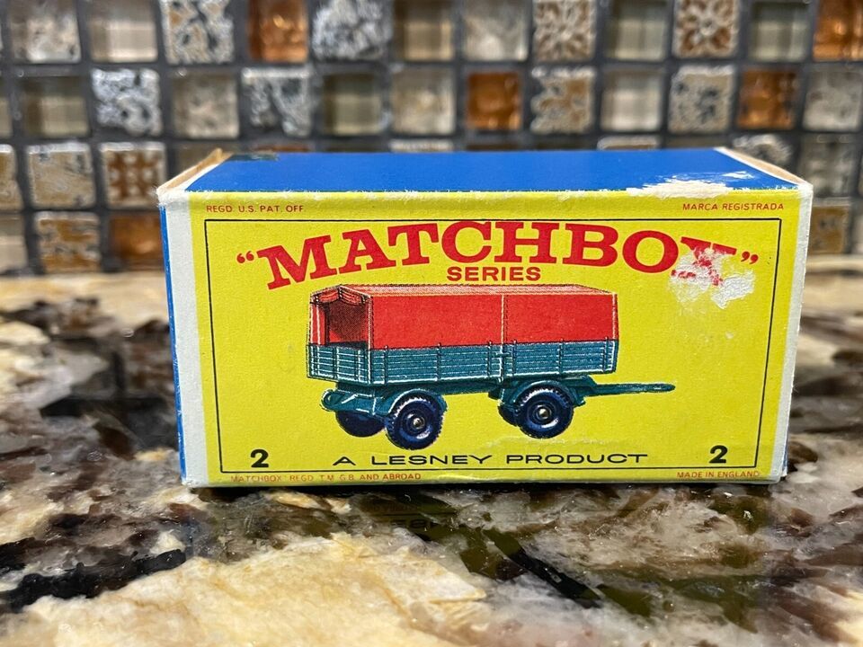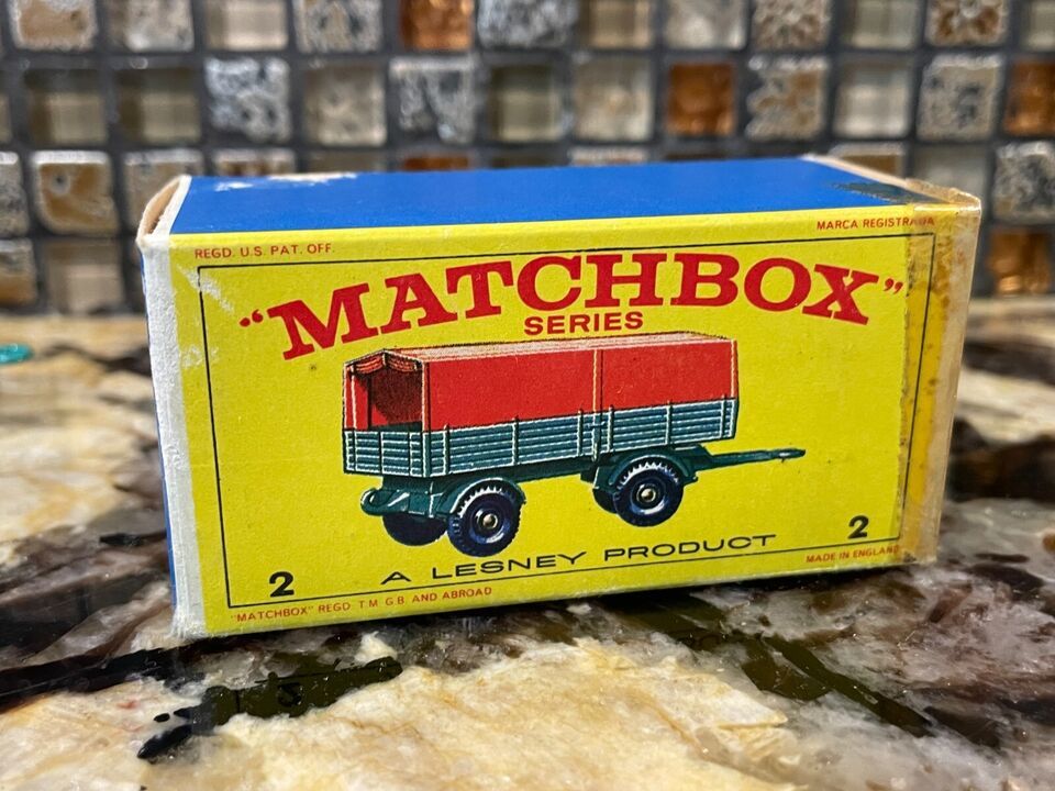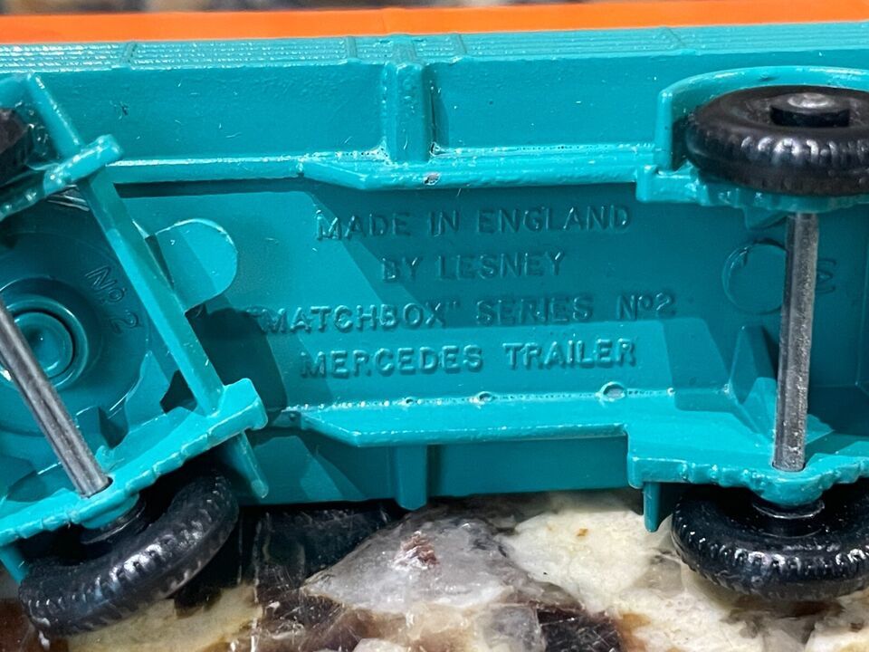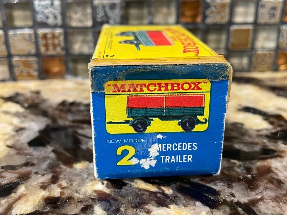 This is an original 1960s era Matchbox diecast toy vehicle made by Lesney of England-complete with original box...No 2 Mercedes Trailer...clean and intact with no wear or damages..box all intact.. looks and displays well and is guaranteed original and authentic . Box on the side says new model No2/=. Please look closely ata the pictures