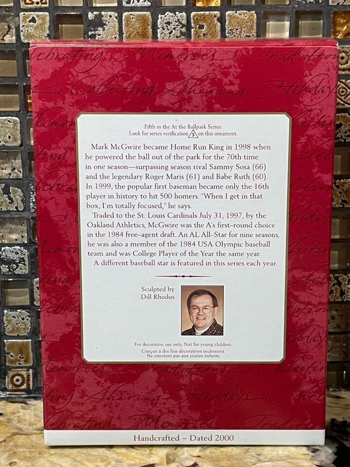 2000 Mark McGwire Hallmark Keepsake Ornament At the Ballpark Series #5 Mint