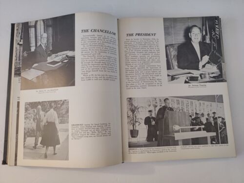 This vintage yearbook from the University of Southern California captures a piece of history from 1960. It features memorable moments and faces from the school's student body, staff, and faculty. The yearbook is an original piece and has not been modified in any way. The theme of the yearbook is focused on elementary and high schools, making it a great addition to any collection of educational memorabilia. The book was made in the United States and is not signed by anyone.