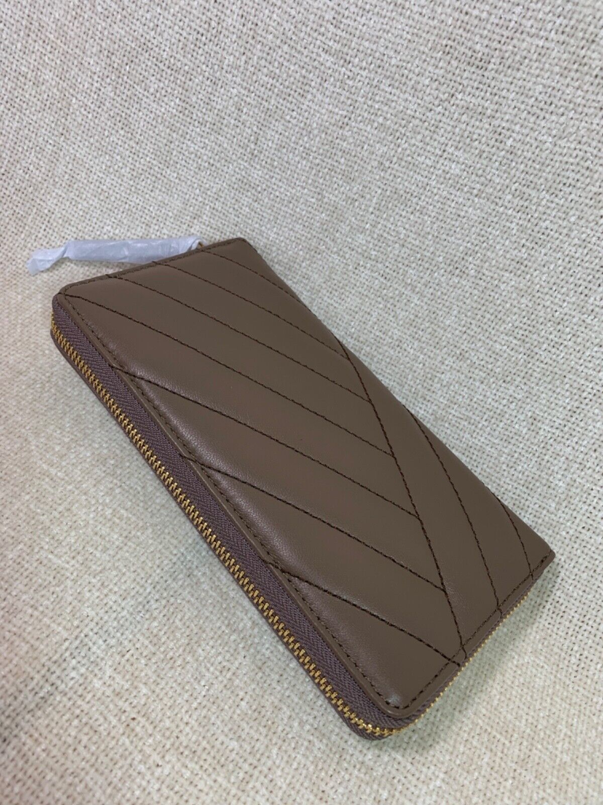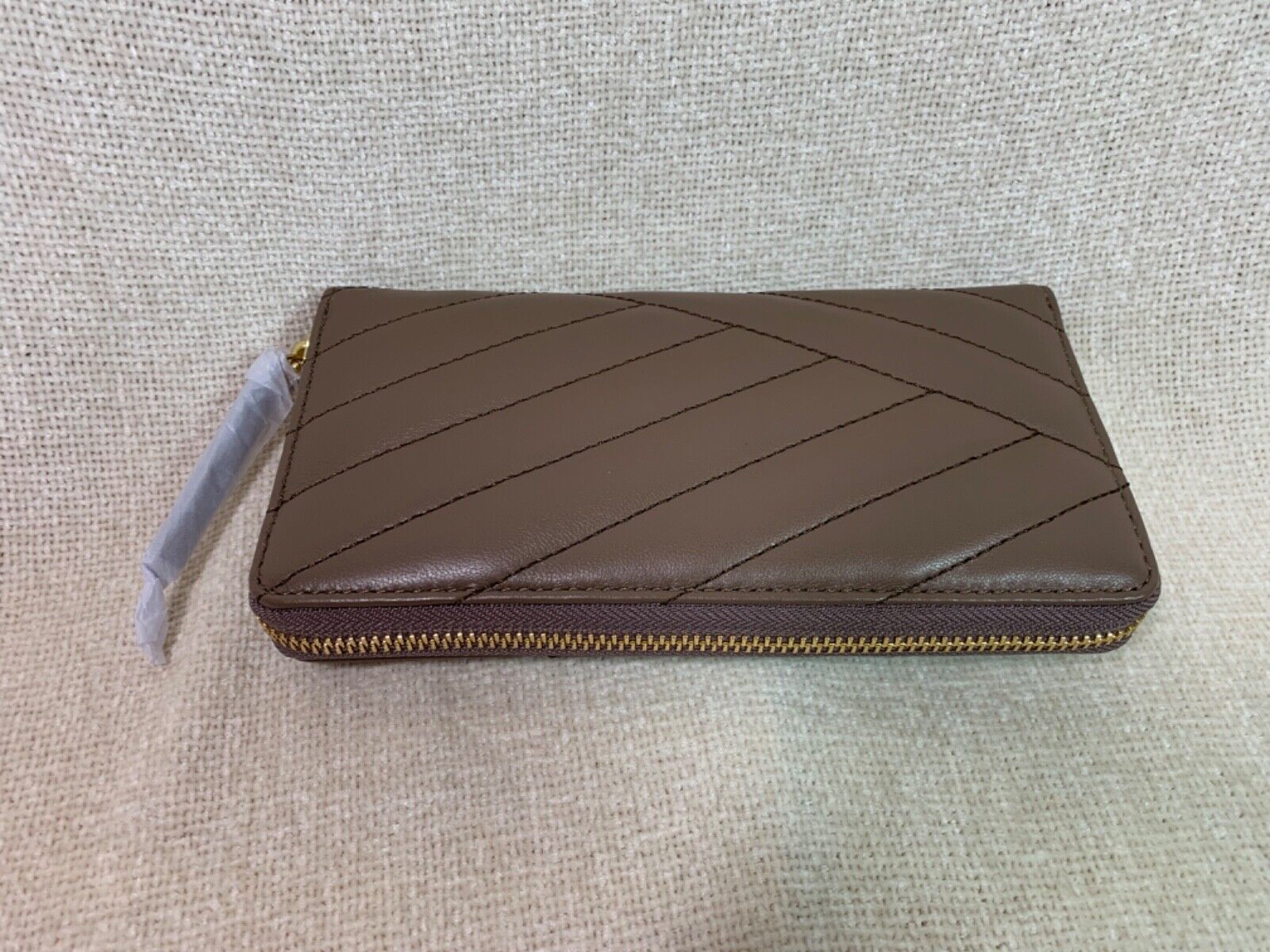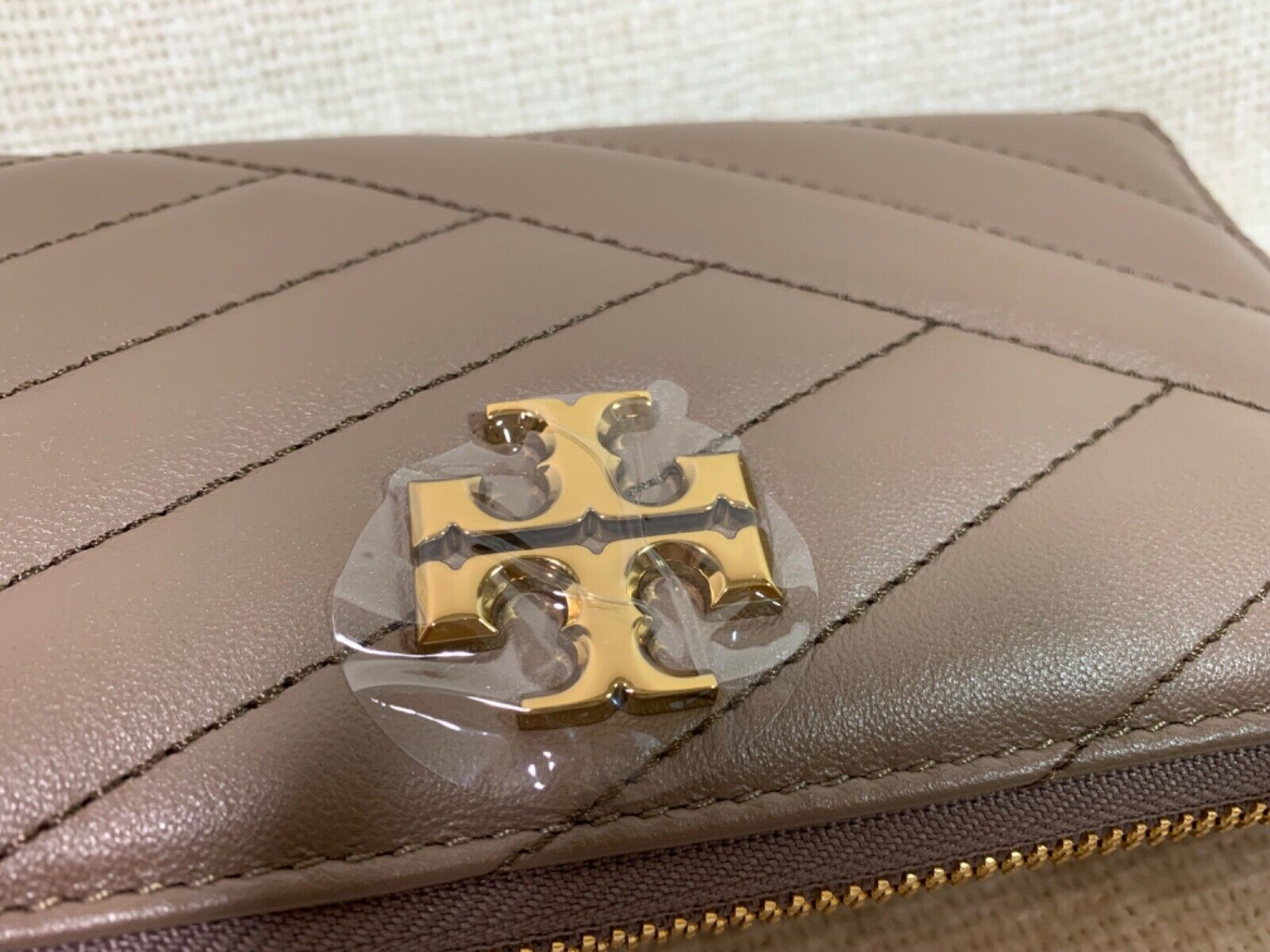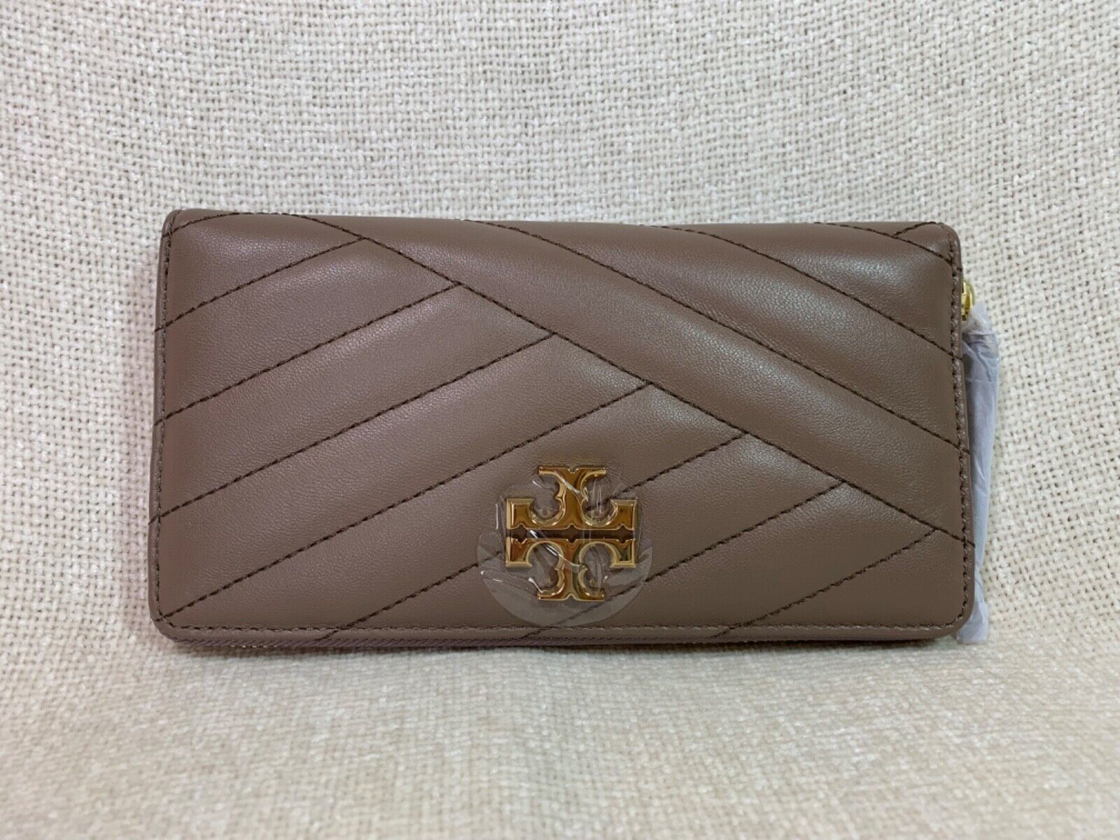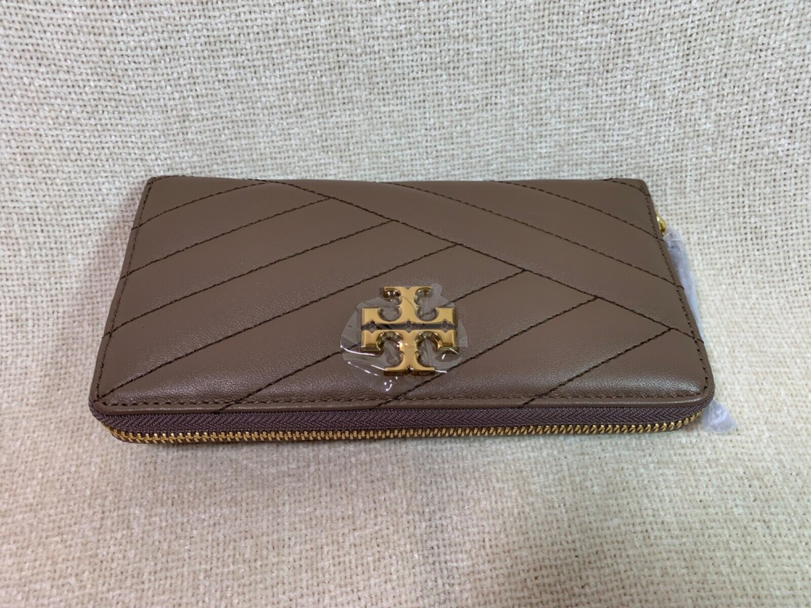 You Are Looking At A Tory Burch Classic Taupe Kira Chevron Leather Zip-Around Long Wallet