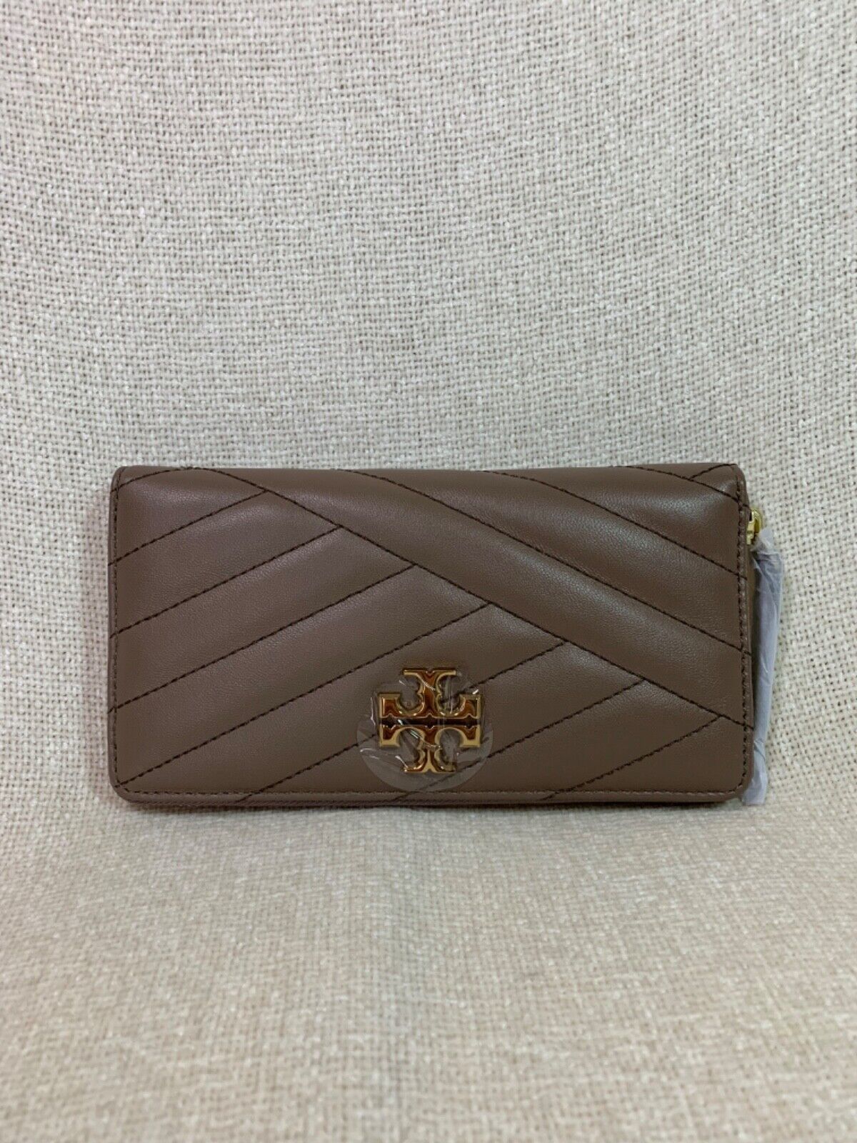 NWT Tory Burch Kira Chevron Classic Taupe Leather Long Wallet $248