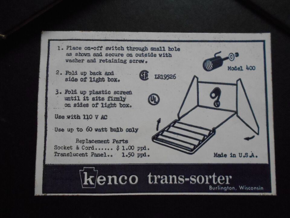 Kenco Trans Sorter for Editing, Viewing Cataloging Color Slides Model 400