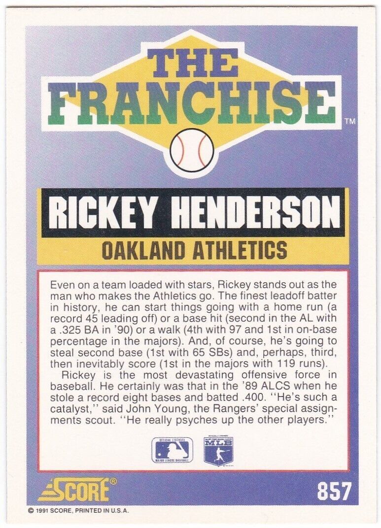 M) 1991 Score Baseball Trading Card - Rickey Henderson #857 - The Franchise