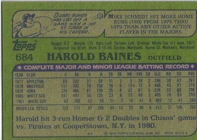 1982 Topps Harold Baines Chicago White Sox #684 Baseball Card