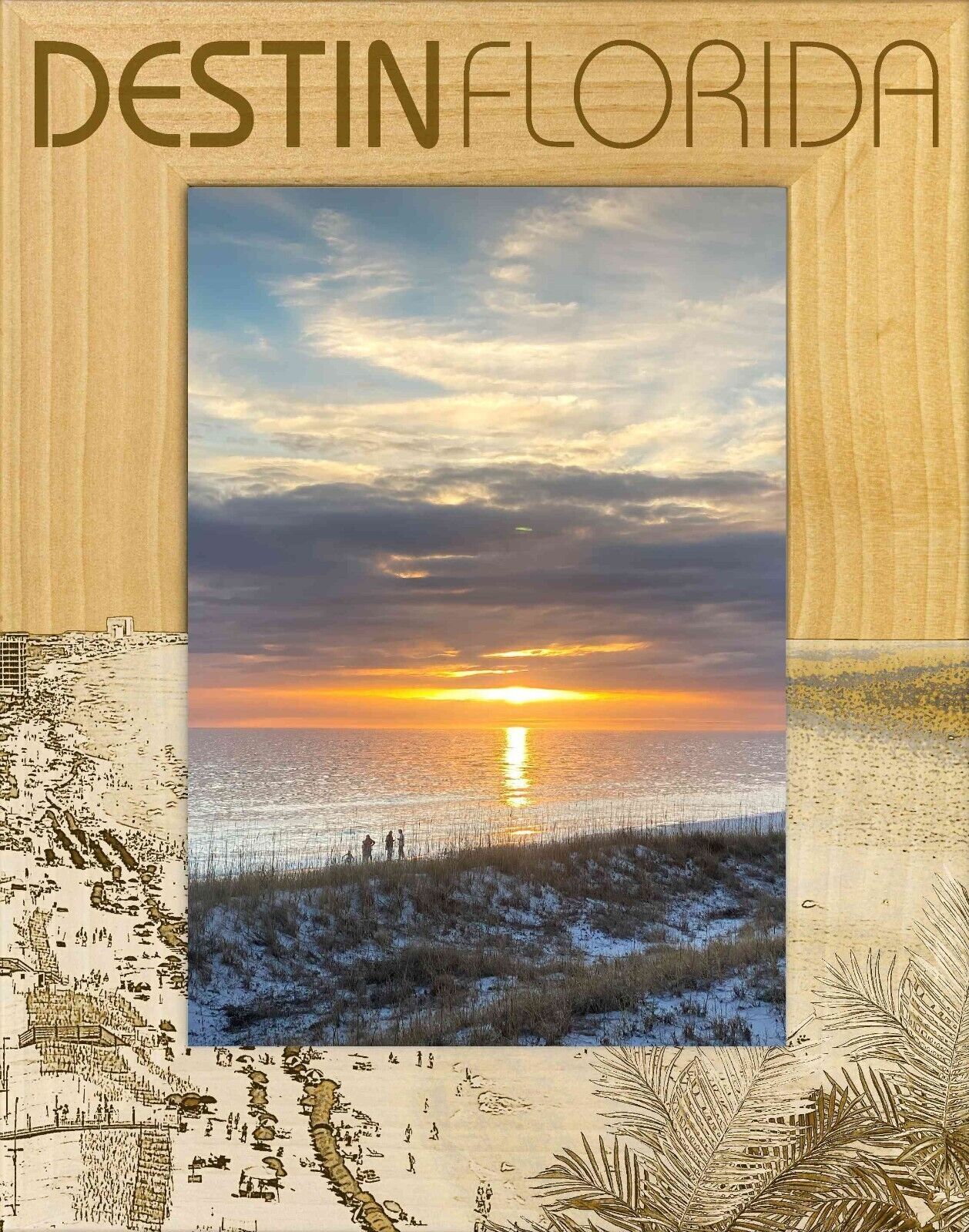 Destin Florida Laser Engraved Wood Picture Frame Portrait (8 x 10)