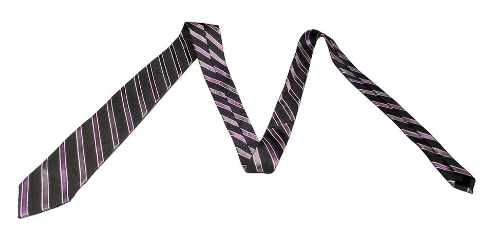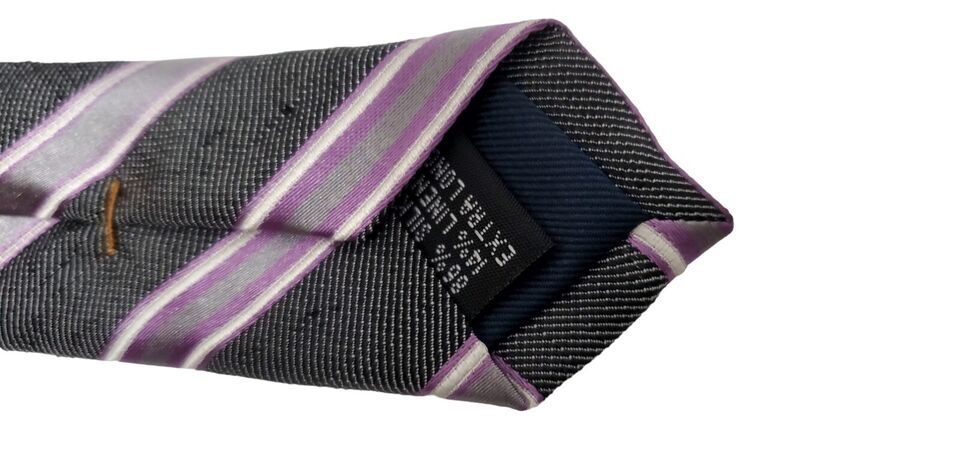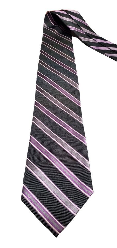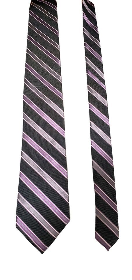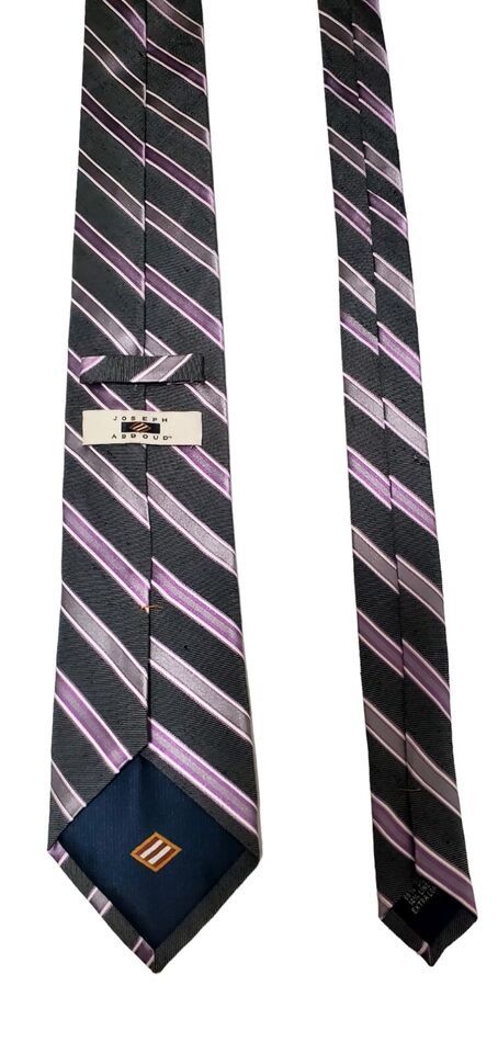 Joseph Abboud Slim Short Purple Stripe Gray Silver Black Necktie Silk EUC