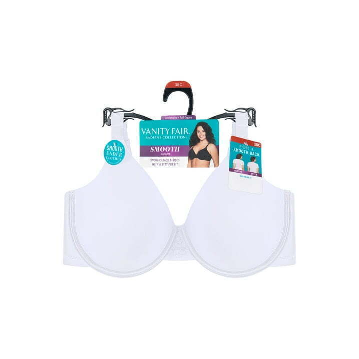 Our Vanity Fair Radiant Collection Full Figure Lightly Lined Smoothing Underwire Bra features 4-way stretch fabric that smooths sides and back for a perfect silhouette. The lightly lined pads provide modesty and support without adding extra volume. Full coverage cups provide a confident fit - no spilling out. The clean finished neckline looks smooth under all your clothes. This smoothing bra is designed with back adjust, stay-in-place straps to keep you feeling comfortable and looking flawless. The no poke underwire provides support and comfort all day. Beautiful lace at the center front adds a flirty touch while remaining smooth under clothes. You'll love the Vanity Fair Radiant Collection, Lightly Lined Smoothing Underwire Bra.