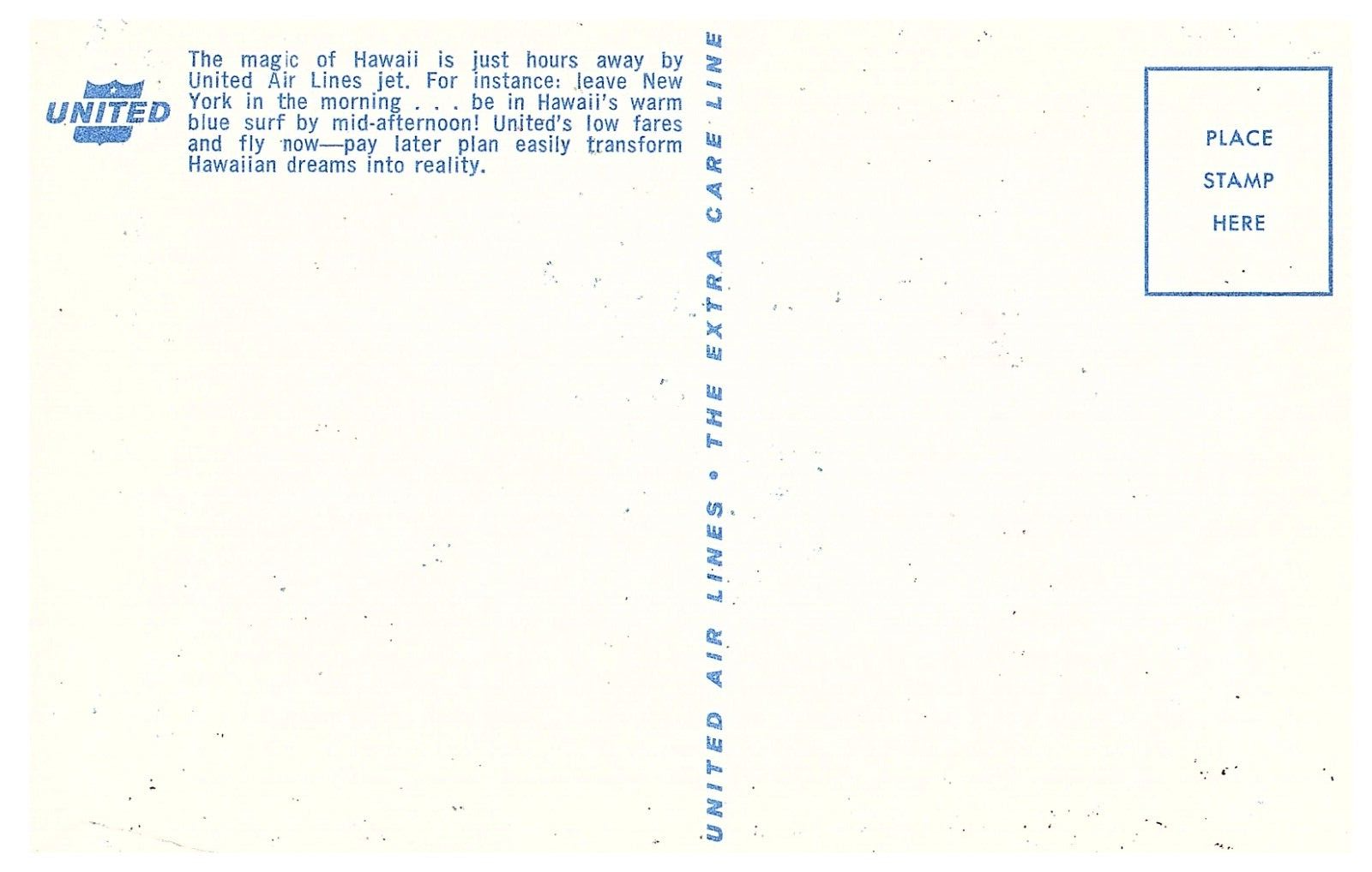 Hawaiian Woman w Plumeria Lei Flower Behind Ear United Airlines Travel Postcard