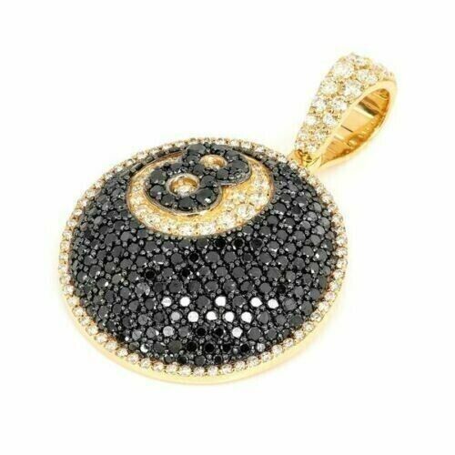 2Ct Lab Created Diamond 8 Ball Billiards Pendant 14K Yellow Gold Plated 18 Chain