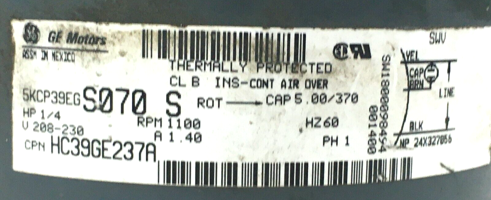 This is GE 5KCP39EGS070S Carrier HC39GE237A Condenser Fan Motor 1/4 HP 208/230V 1100RPM used part.