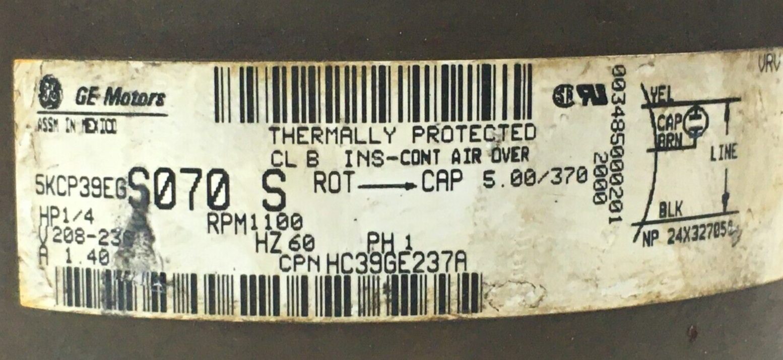 This is GE 5KCP39EGS070S Carrier HC39GE237A Condenser Fan Motor 1/4 HP 208/230V 1100RPM used part.