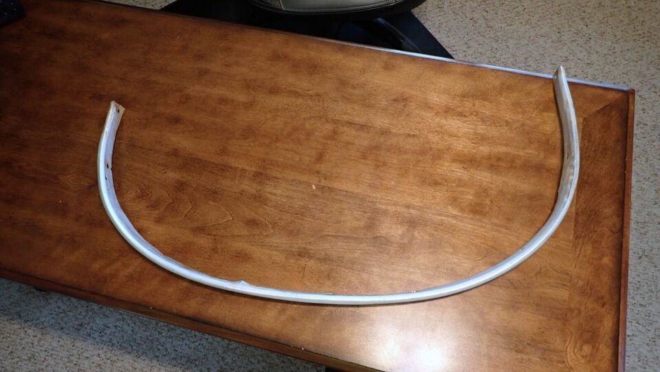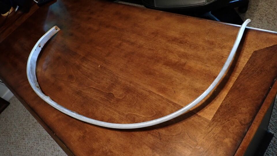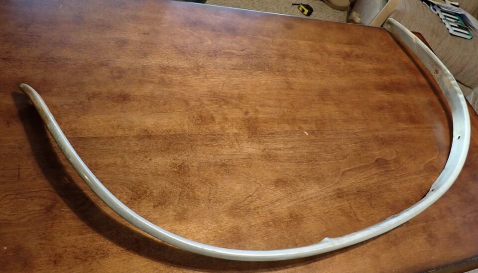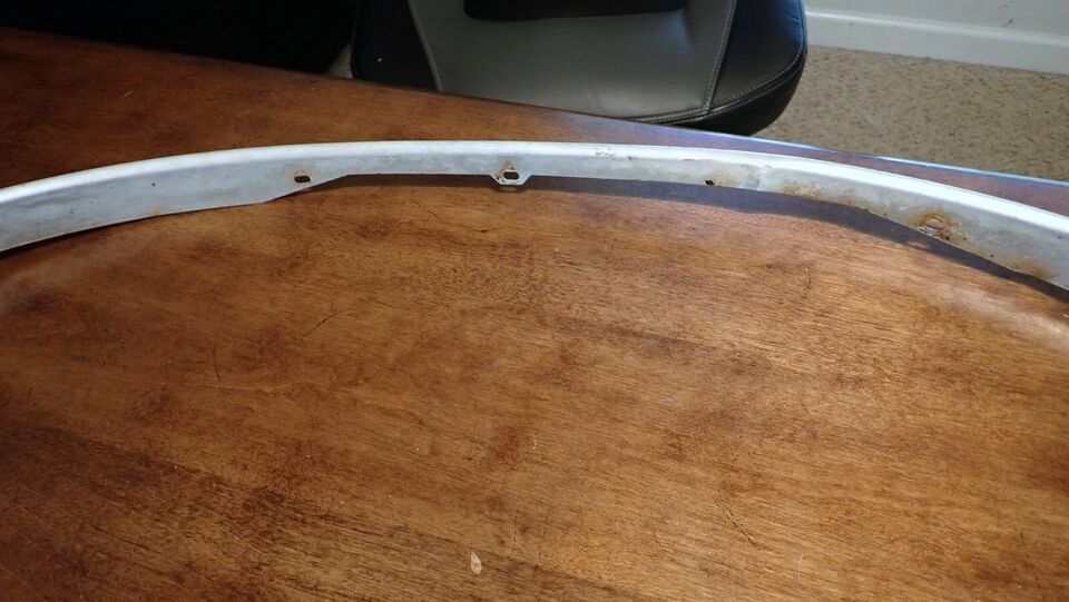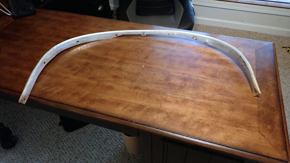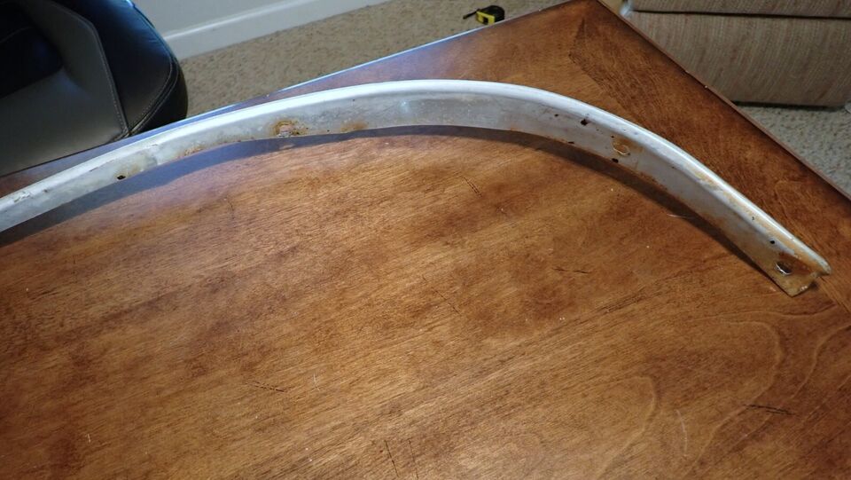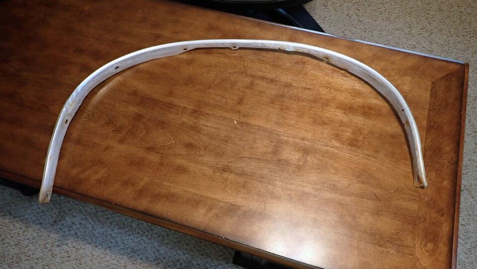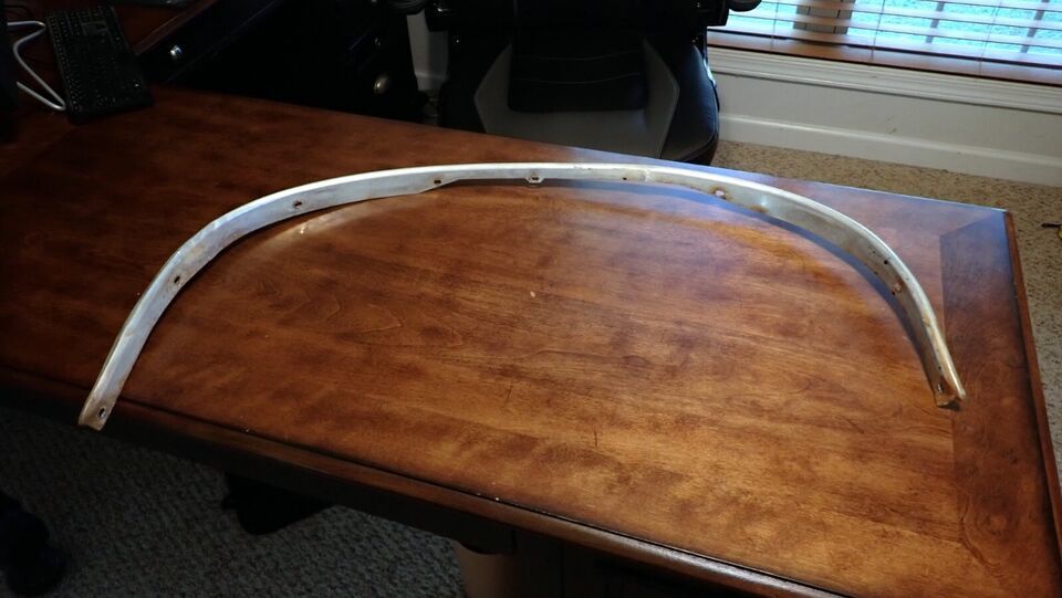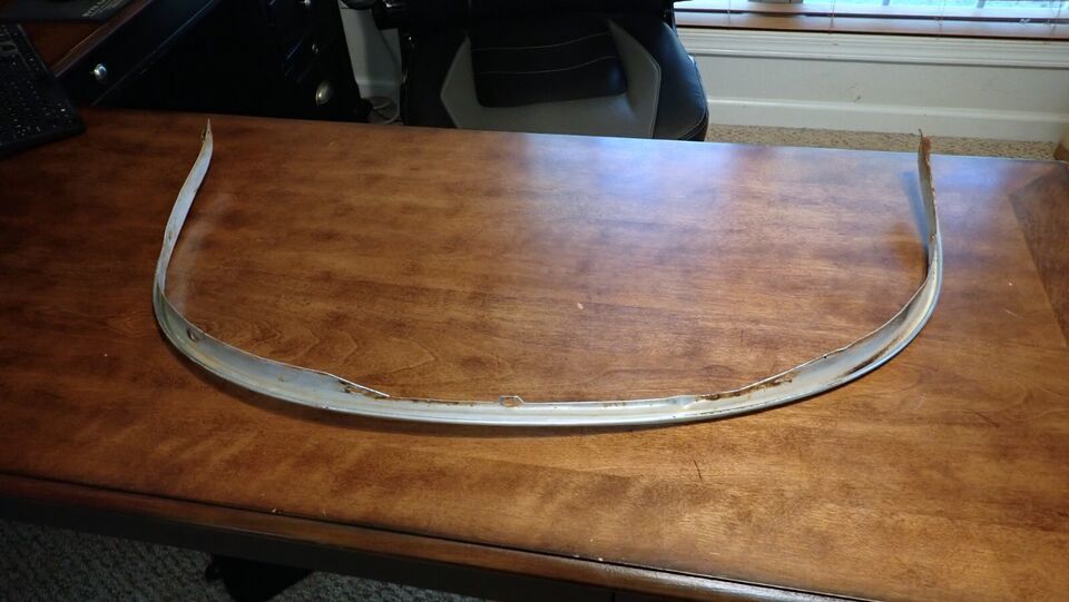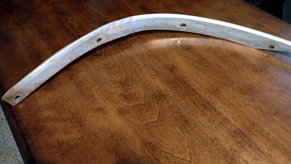 USED 1968 - 1969 Ford Fairlane Torino Right hand passenger side Front Fender Wheel Opening Moulding. There is some wear and surface scratches, weathering, deeper scratches, some corrosion, nics, dents.