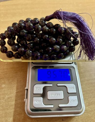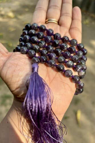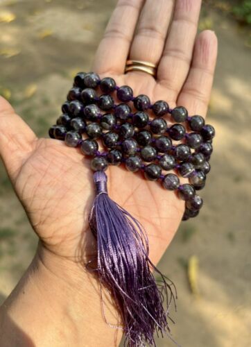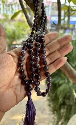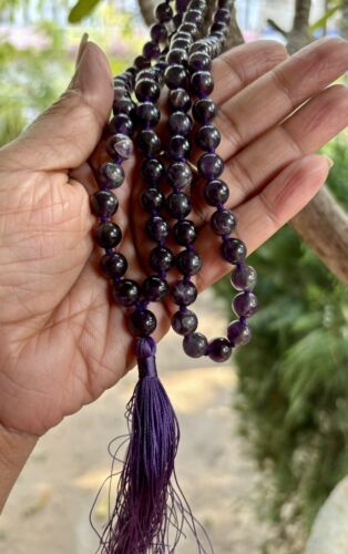 8 mm Rnd 108+1 Beads Original Purple Amethyst Jaap Rosary, Japa Mala Energized