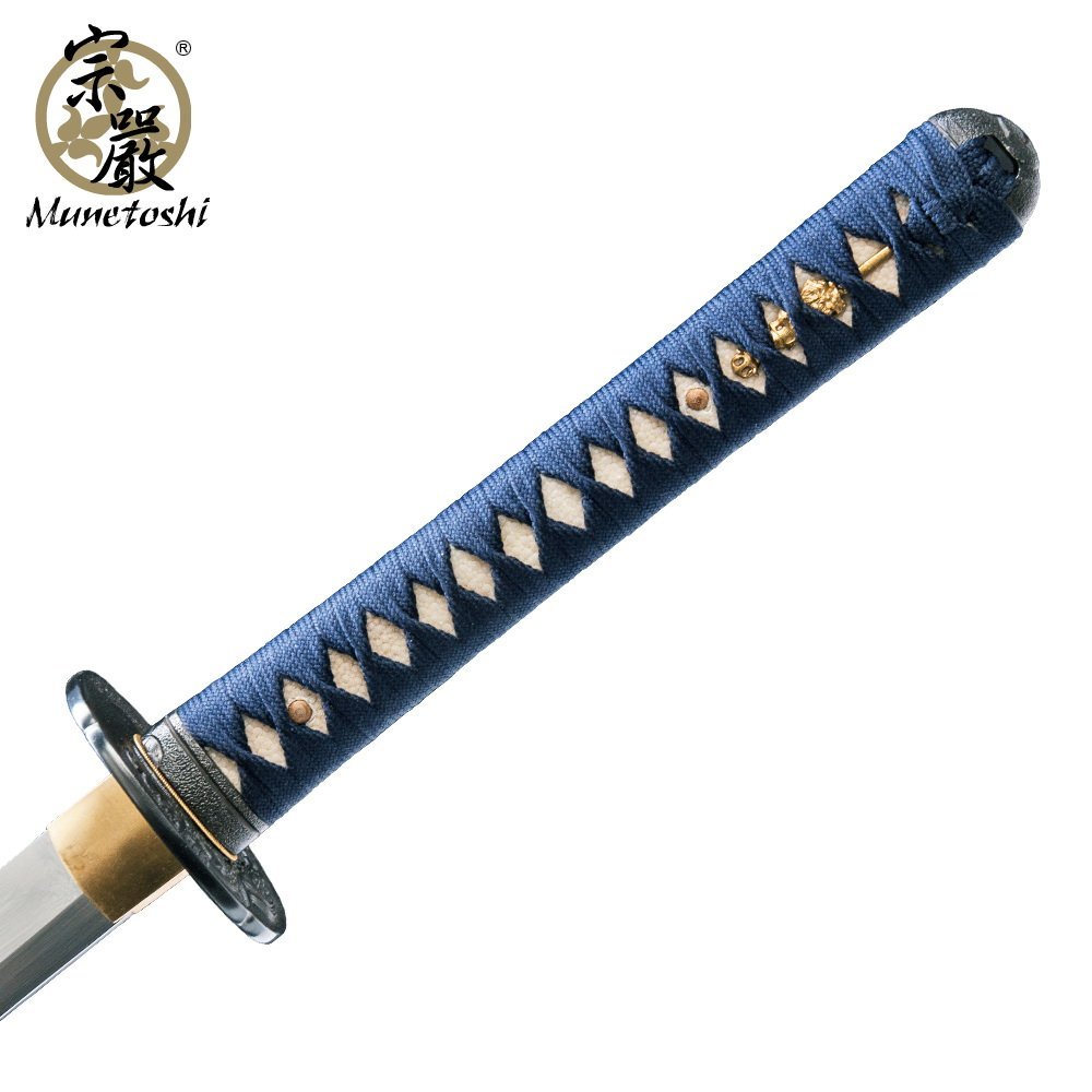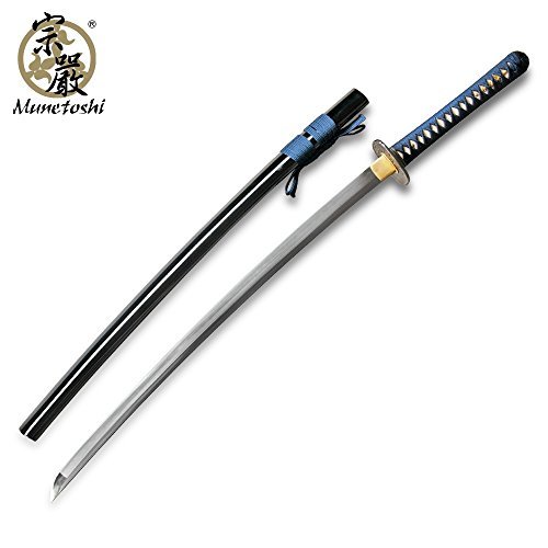Product description: This is the Munetoshi Water Dragon Differentially Hardened 1060 Samurai Katana Sword. The blade has been constructed from differentially hardened 1060 carbon steel. The hamon of the sword is authentic with a midare pattern. The blade comes full tang and sharp. Note: Stand sold separately.