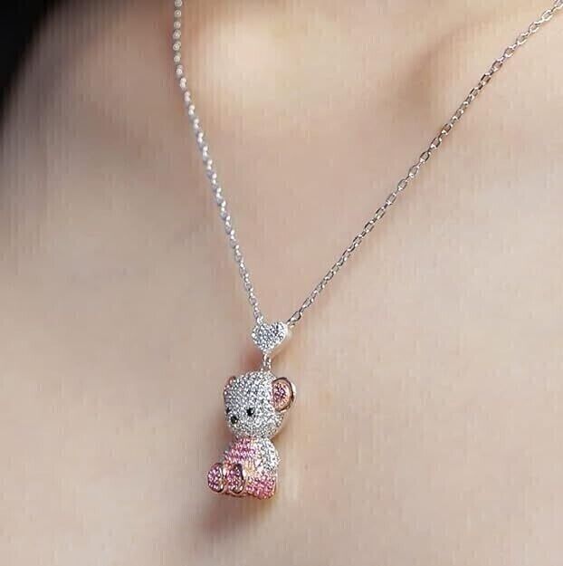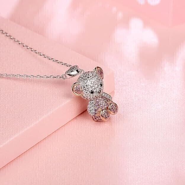 1.50Ct Round Cut Lab-Created Diamond Teddy Bear Pendant 14K White Gold Plated