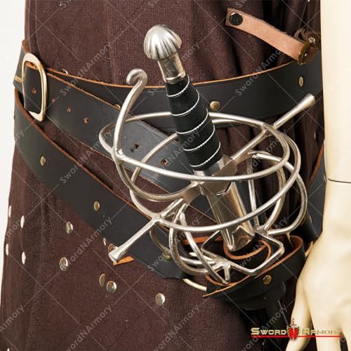 Product description: The belt was a vital component to medieval garments and armor, keeping disparate pieces together, as well as providing a platform on which to hang drinking horns and skins, weapons, quivers, bags, and purses. This particular model is a fine brown genuine leather piece, double-wrapped for extra support when hanging swords from it. Armor up, and complete your reenactment outfit with this versatile belt! [Dimensions] 81?x1.5? [Materials] The genuine leather and brass buckle each lend this belt an authentic look and feel [Double Wrap] Provides extra support for weapons, without sagging the rest of the belt [Sword Frog] Adjustable to fit most scabbards [Quality] All of our products are made of the finest materials, and are packaged securely in our own warehouse