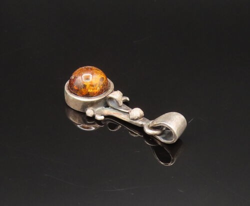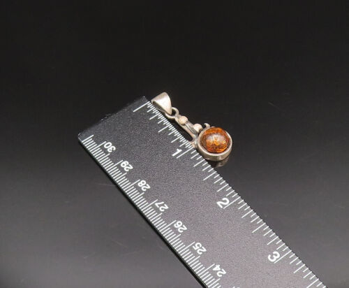 925 Sterling Silver - Vintage Round Cabochon Baltic Amber Pendant - PT21001