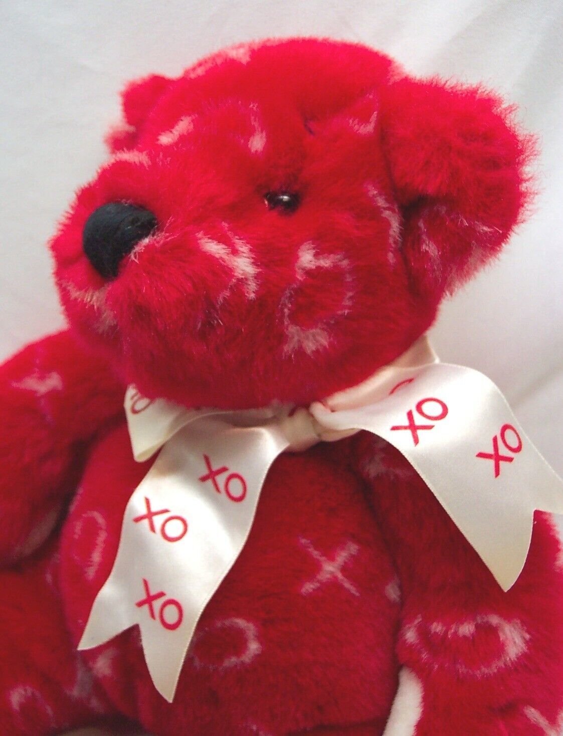 This is a VINTAGE KISSES THE RED TEDDY BEAR Plush Stuffed Animal Toy. Made by GANZ for the Heritage Collection. It has X's and O's all over it. CUTE! It is 15 inches tall in standing position. It is in great condition. It is CLEAN and SOFT! No tears, stains or defects. Combine auctions to save on shipping. Please contact me if you need to make other payment arrangements EAG.