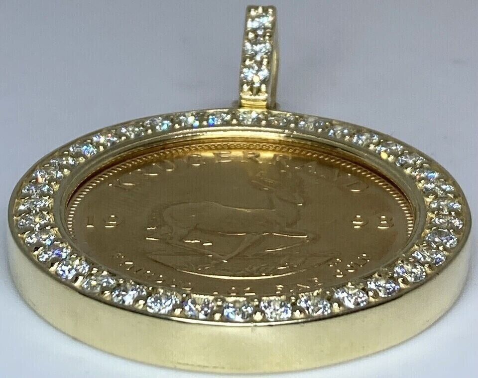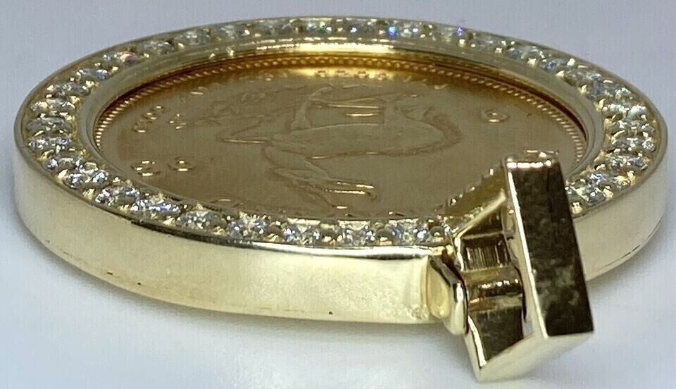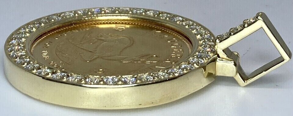 2CT Round Cut Diamond South African Krugerrand Pendant 14k Yellow Gold Plated