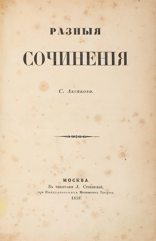 Aksakov S. Raznye sochineniya. Moscow. 1858/Aksakov S. Different compositions